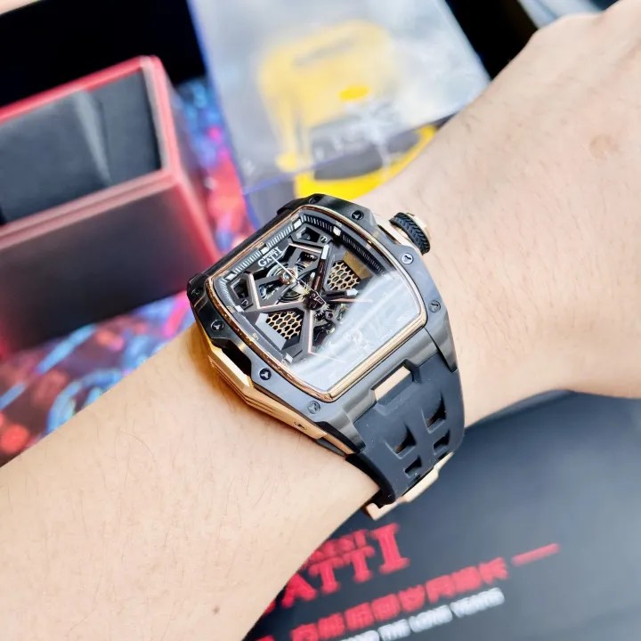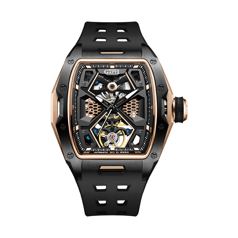 Mẫu đồng hồ Bonest Gatti BG5501-A4 với gam đen phối màu vàng hồng dành cho các a đam mê phong cách thể thao cá tính.