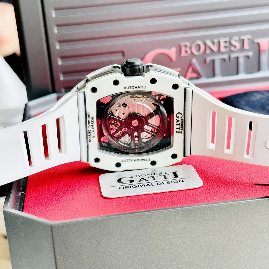 Với thiết kế thể thao, mạnh mẽ nhưng vô cùng đẳng cấp và tinh tế. Vỏ của Bonest Gatti Technical Specification BG9907-A1 được làm từ carbon siêu bền theo năm tháng. Đi kèm là bộ máy cơ chính xác cao giúp người đeo nâng tầm đẳng cấp khi sở hữu siêu phẩm đình đám này.