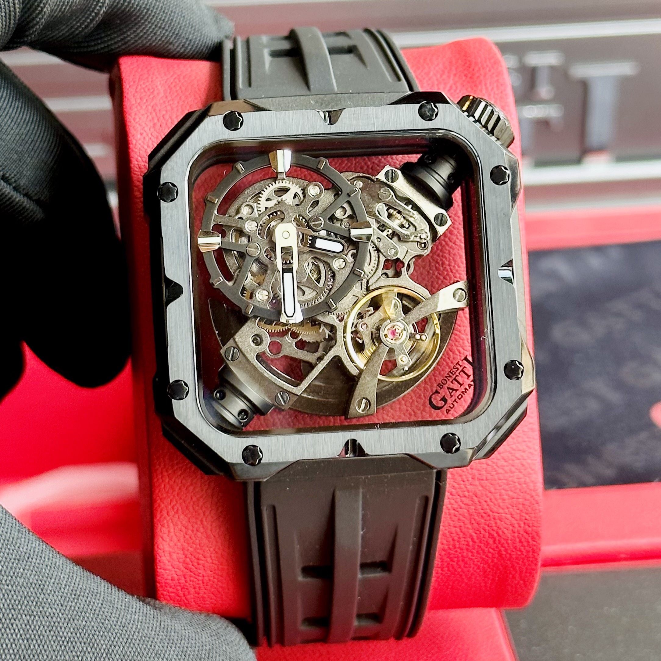 Bonest Gatti Mechanical Movement BG4001.B với tông màu đen huyền bí theo phom mặt hình vuông thể hiện sự khỏe khoắn nhưng cũng vô cùng thẩm mỹ.
