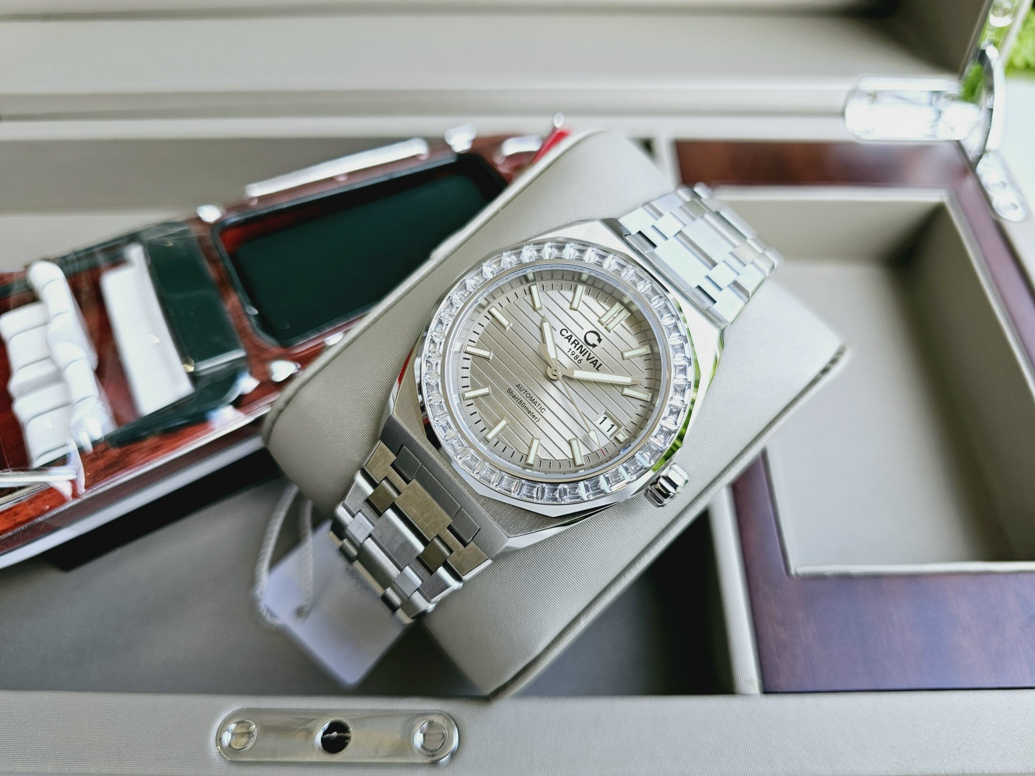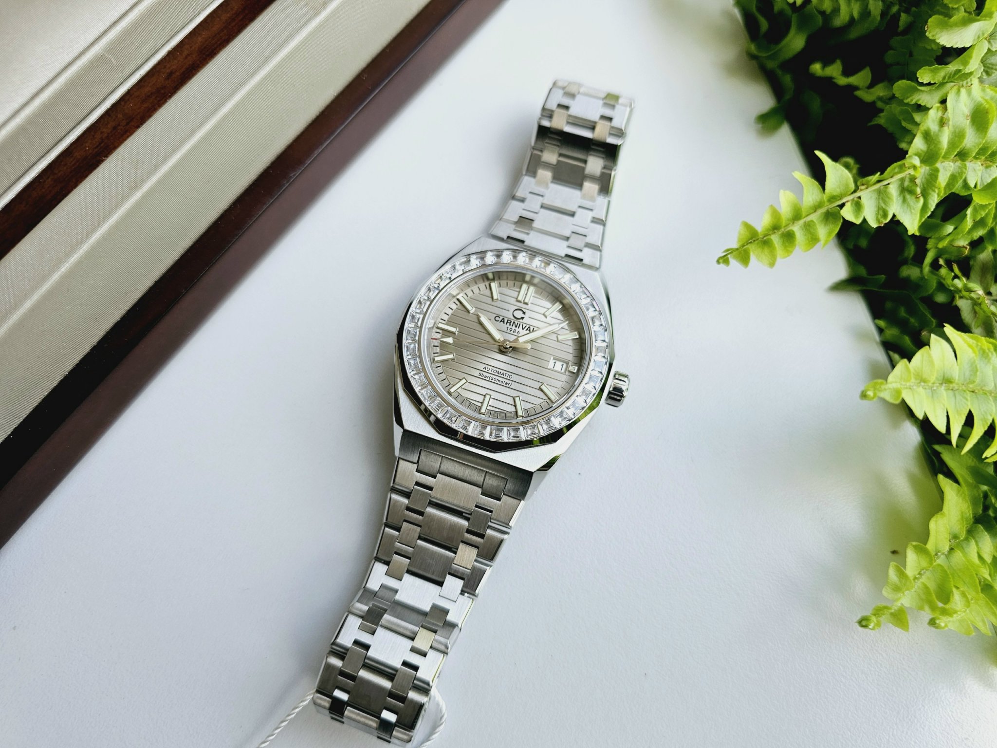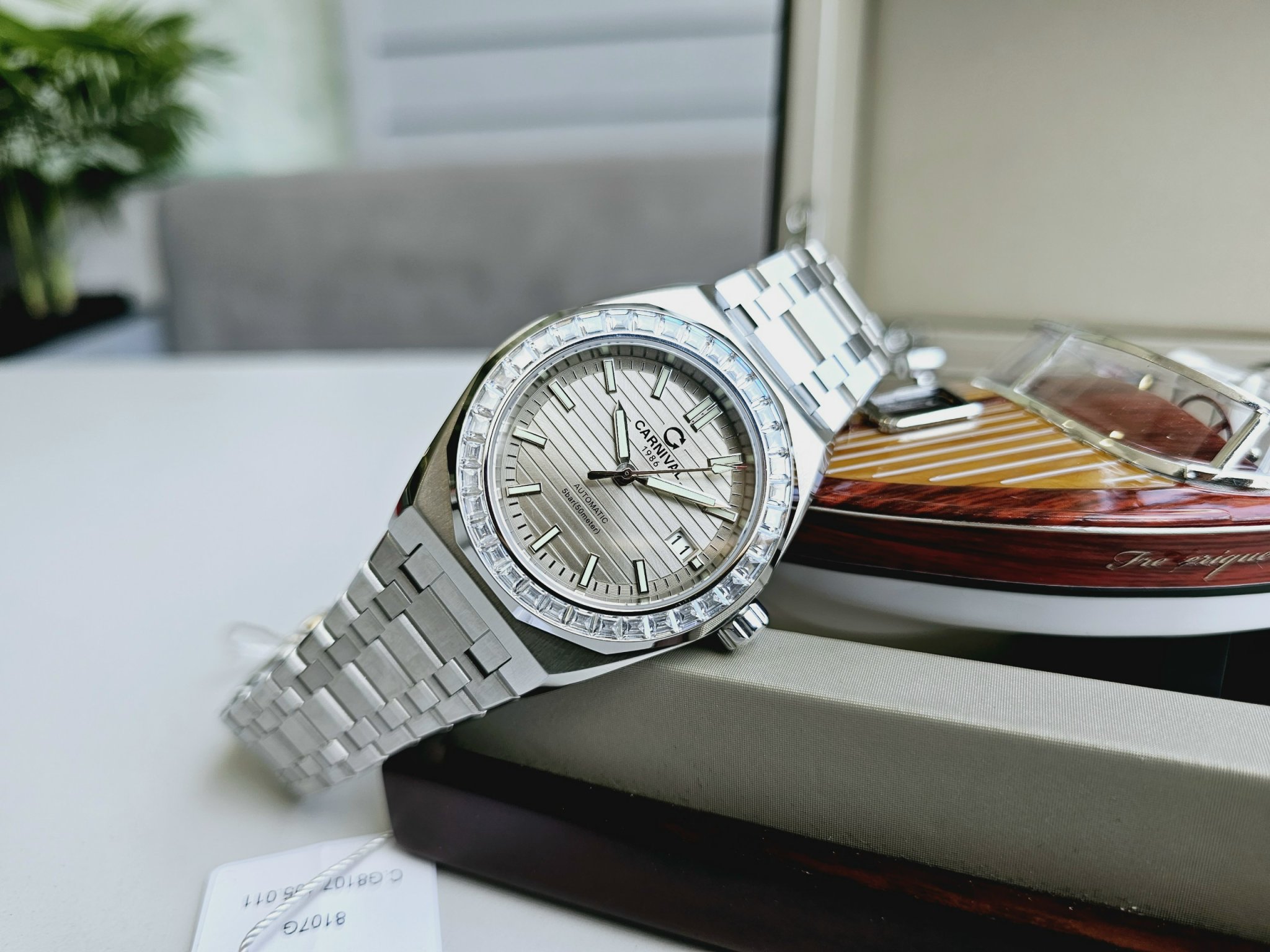 Một thiết kế mới đồng hồ Carnival 8107G-VT-Nvới mặt xanh dial vân sọc, cùng viền benzen đính đá siêu chất phong cách trẻ trung đẳng cấp phái mạnh