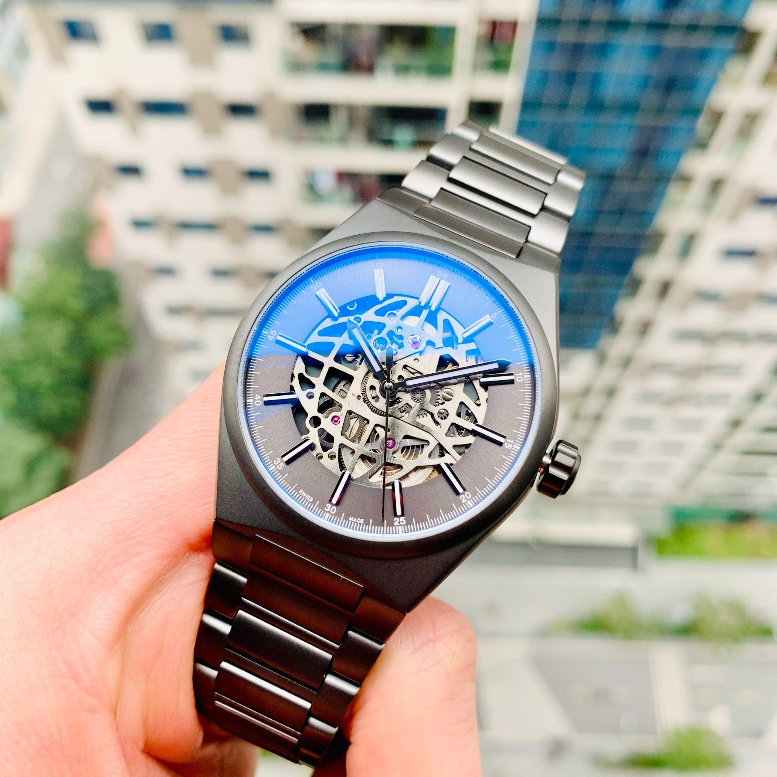 - Thân thép ko rỉ, mạ PVD Titanium màu Gunmetal Grey nam tính & độc đáo
