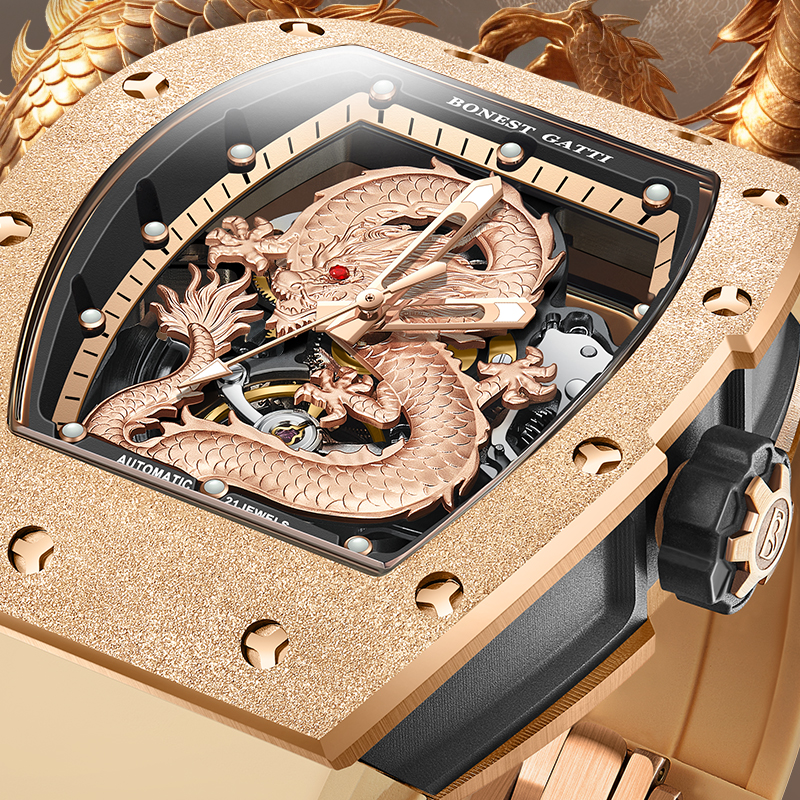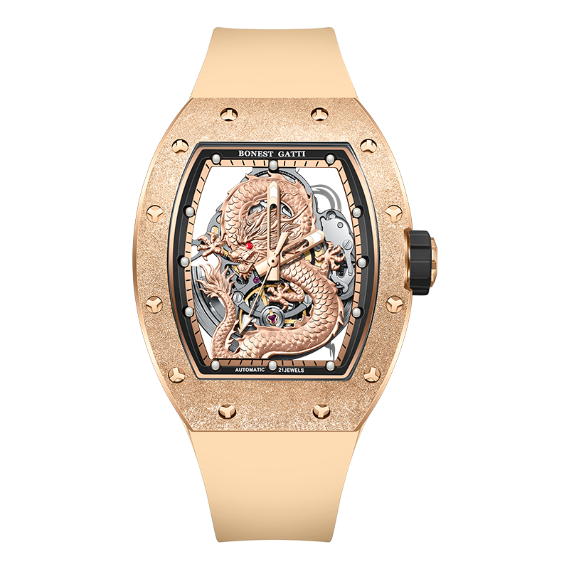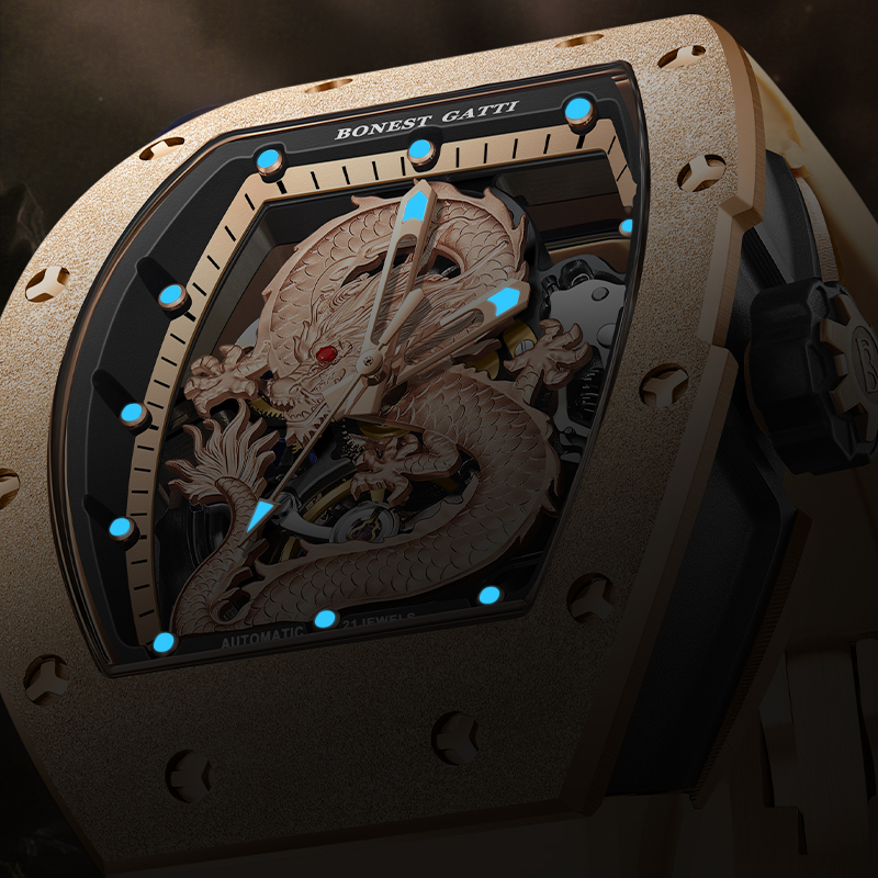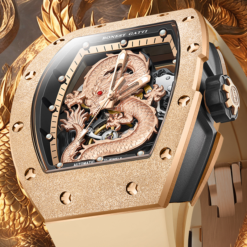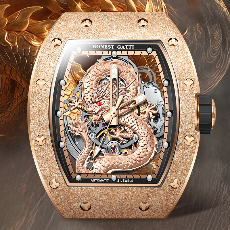 Đồng hồ nam Bonest Gatti BG5003-R2, hay còn được biết đến với tên gọi "Rồng Vàng," là sự kết hợp hoàn hảo giữa vẻ đẹp cổ điển và sự tinh tế hiện đại. Mặt đồng hồ nổi bật với hình ảnh chạm khắc rồng vàng uốn lượn, biểu tượng của quyền lực và sự may mắn trong văn hóa Á Đông. Với vỏ làm từ thép không gỉ, đồng hồ không chỉ mang lại sự bền bỉ mà còn tạo nên nét sang trọng vượt thời gian.