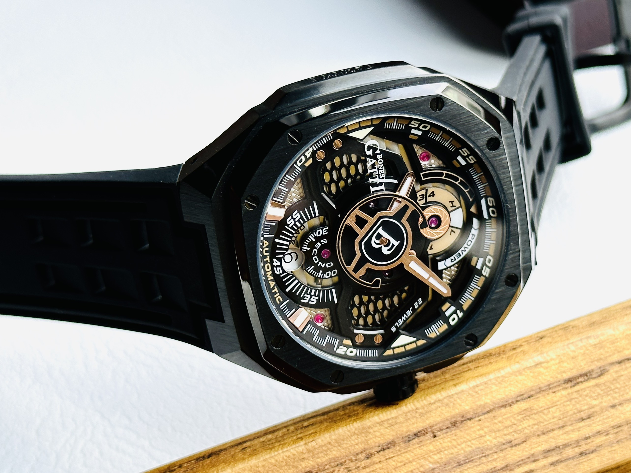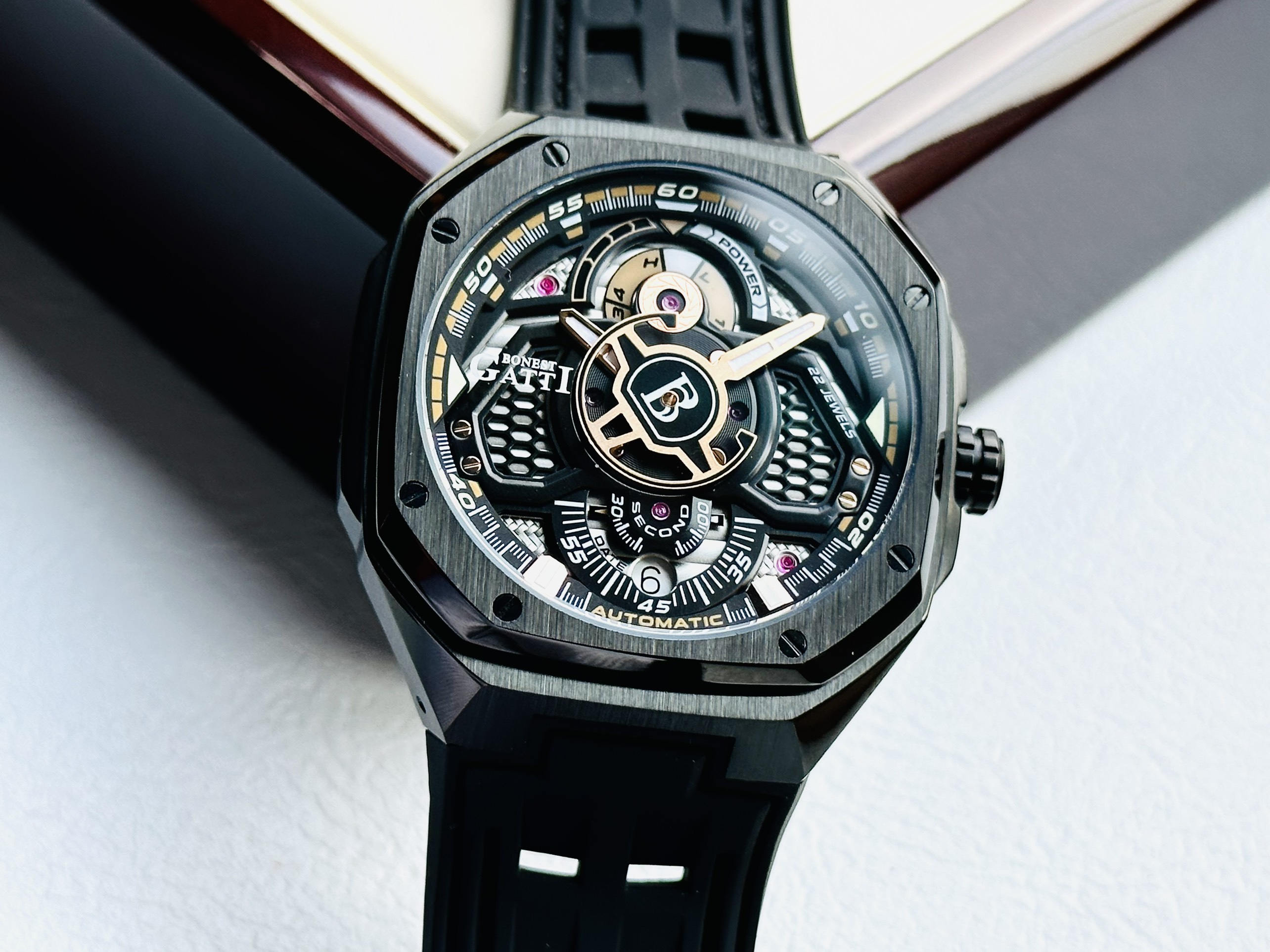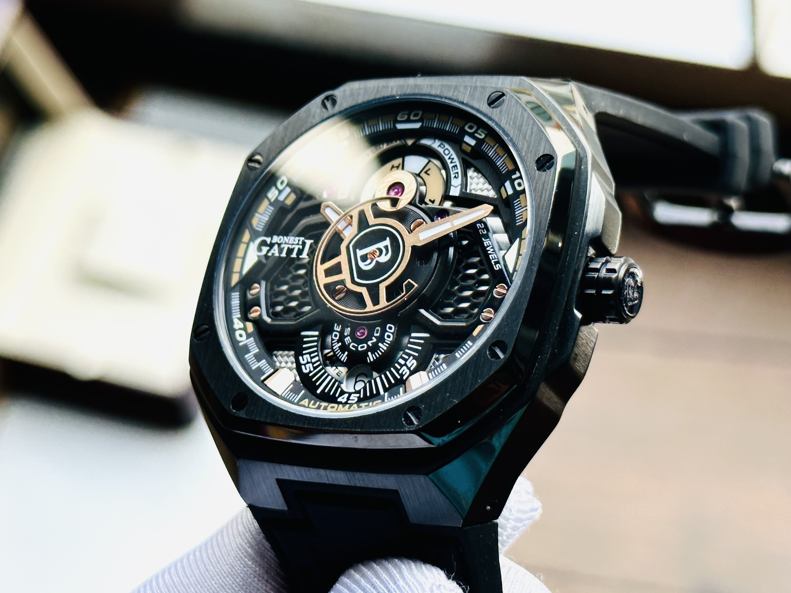 Bonest Gatti BG5801-A1 là một trong những mẫu đồng hồ độc đáo và sang trọng của thương hiệu Bonest Gatti. Với thiết kế tinh tế, mặt số đen trang nhã và dây đeo bằng chất liệu cao su cao cấp, đồng hồ này không chỉ thể hiện phong cách lịch lãm mà còn mang lại sự thoải mái và dễ chịu cho người đeo.