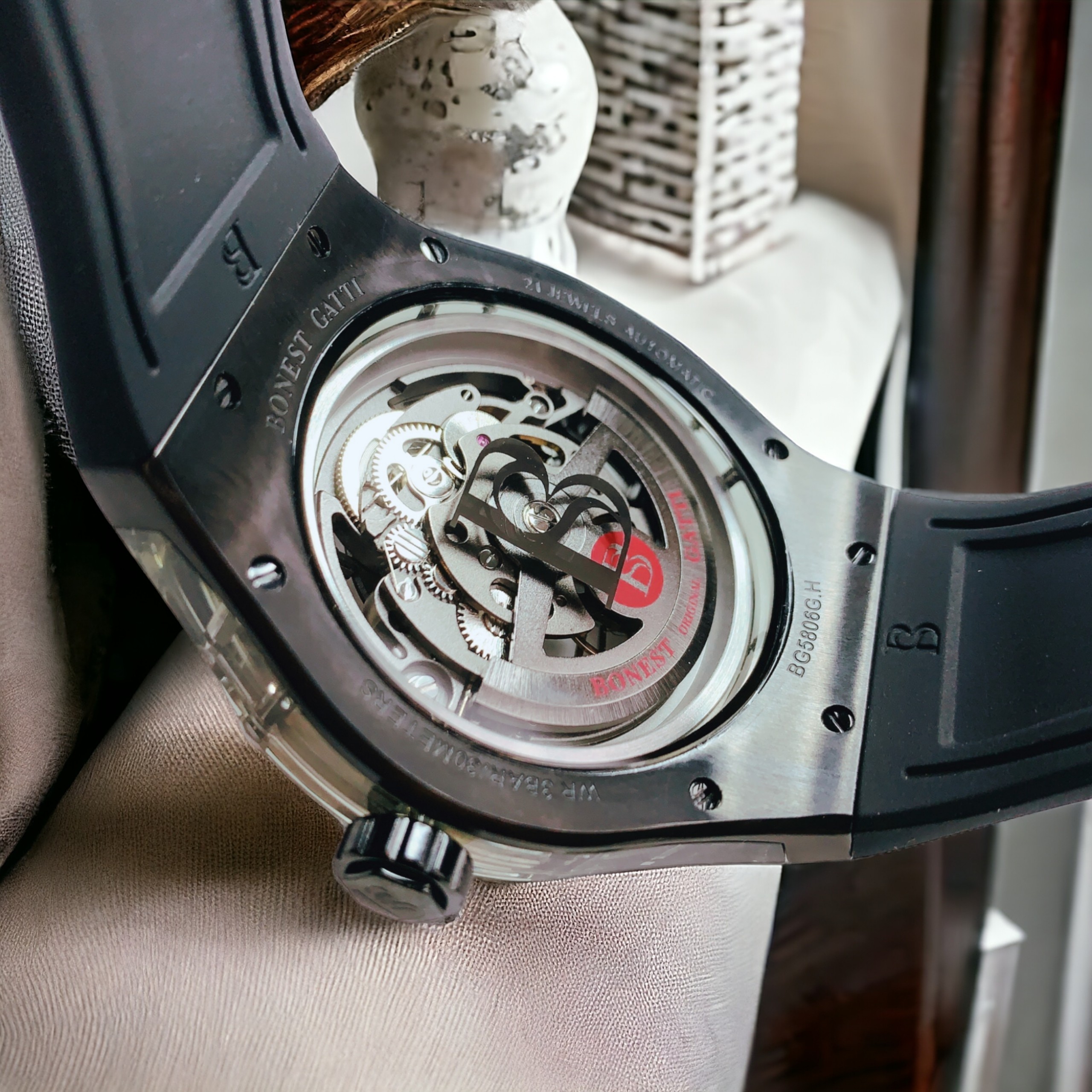 Bonest Gatti BG5806-A1 Với phong cách thể thao và cá tính, dial mặt lộ cơ rất bắt mắt