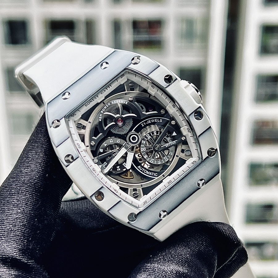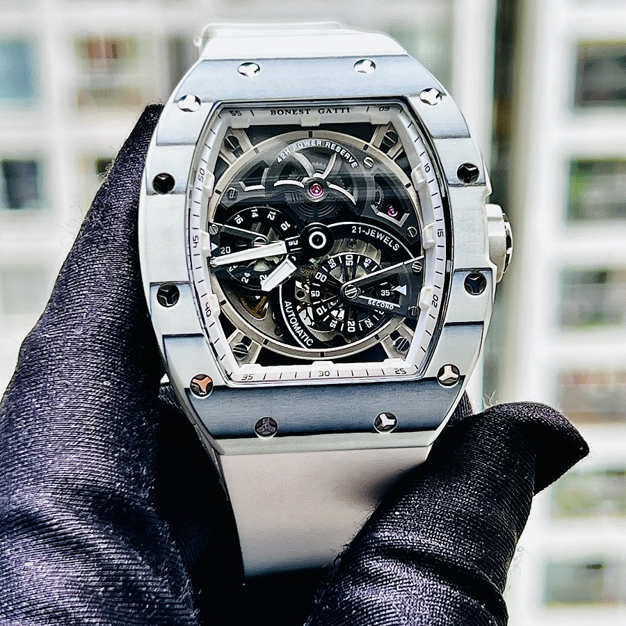 Đồng hồ nam Bonest Gatti BG9004-R1 là một sản phẩm nổi bật với thiết kế hiện đại và tinh tế, phù hợp cho những quý ông yêu thích phong cách lịch lãm. Với mặt kính sapphire chống trầy xước, khung viền bằng Cacbon siêu nhẹ và dây silicone cao cấp, chiếc đồng hồ này không chỉ bền bỉ mà còn tạo cảm giác thoải mái khi đeo.