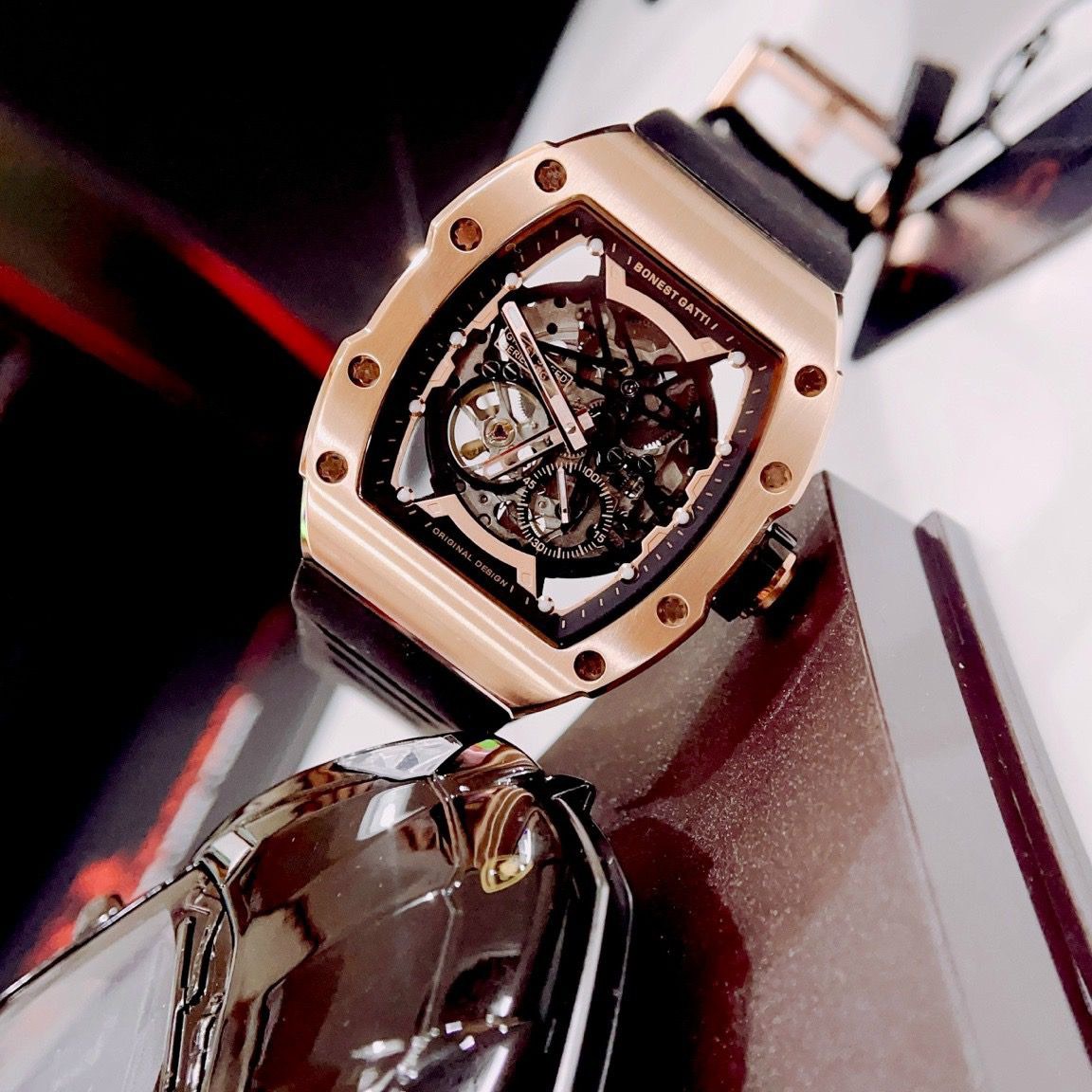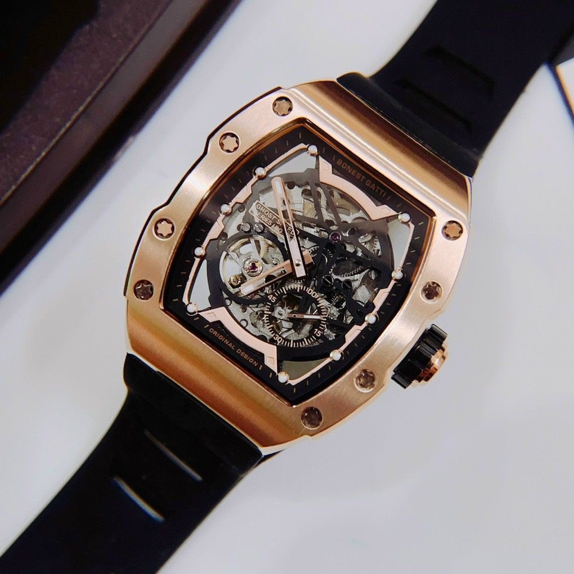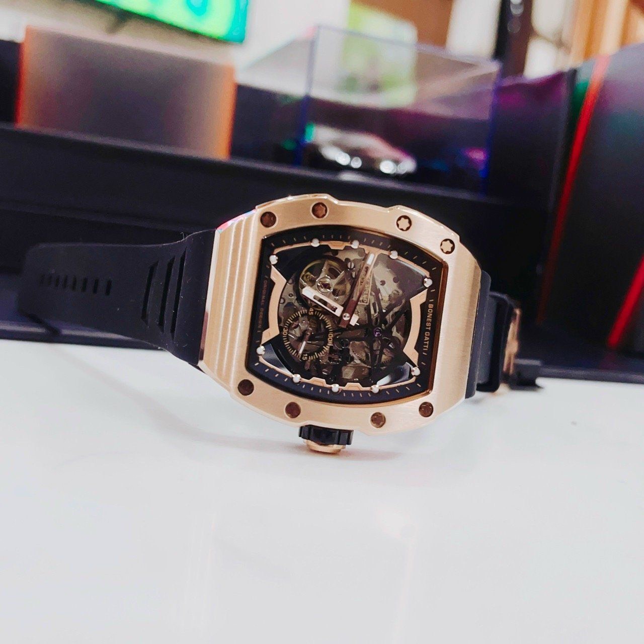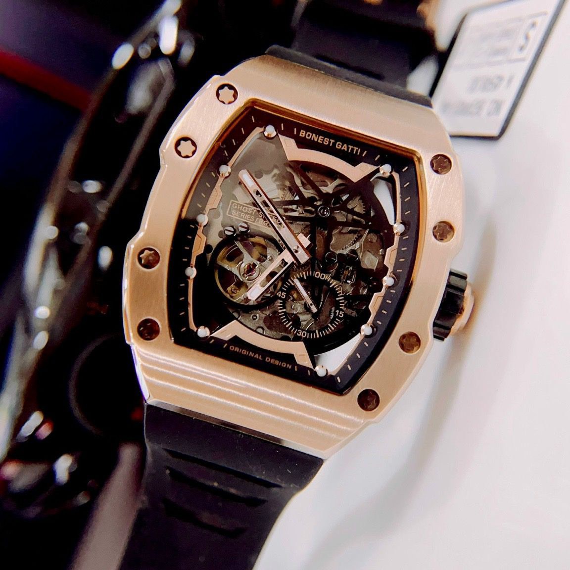Điểm nhấn của Bonest Gatti BG9901-A6 là bộ máy cơ tự động Nhật Bản, đảm bảo độ chính xác và ổn định cao. Dây đeo bằng Silicone mềm mại và chắc chắn, mang đến cảm giác thoải mái khi đeo trong thời gian dài. Ngoài ra, đồng hồ còn có khả năng chống nước lên đến 50 mét, giúp người dùng yên tâm khi sử dụng trong các hoạt động hàng ngày. Tất cả những yếu tố này kết hợp lại làm cho Bonest Gatti BG9901-A6 trở thành lựa chọn lý tưởng cho những ai muốn khẳng định phong cách và đẳng cấp của mình.