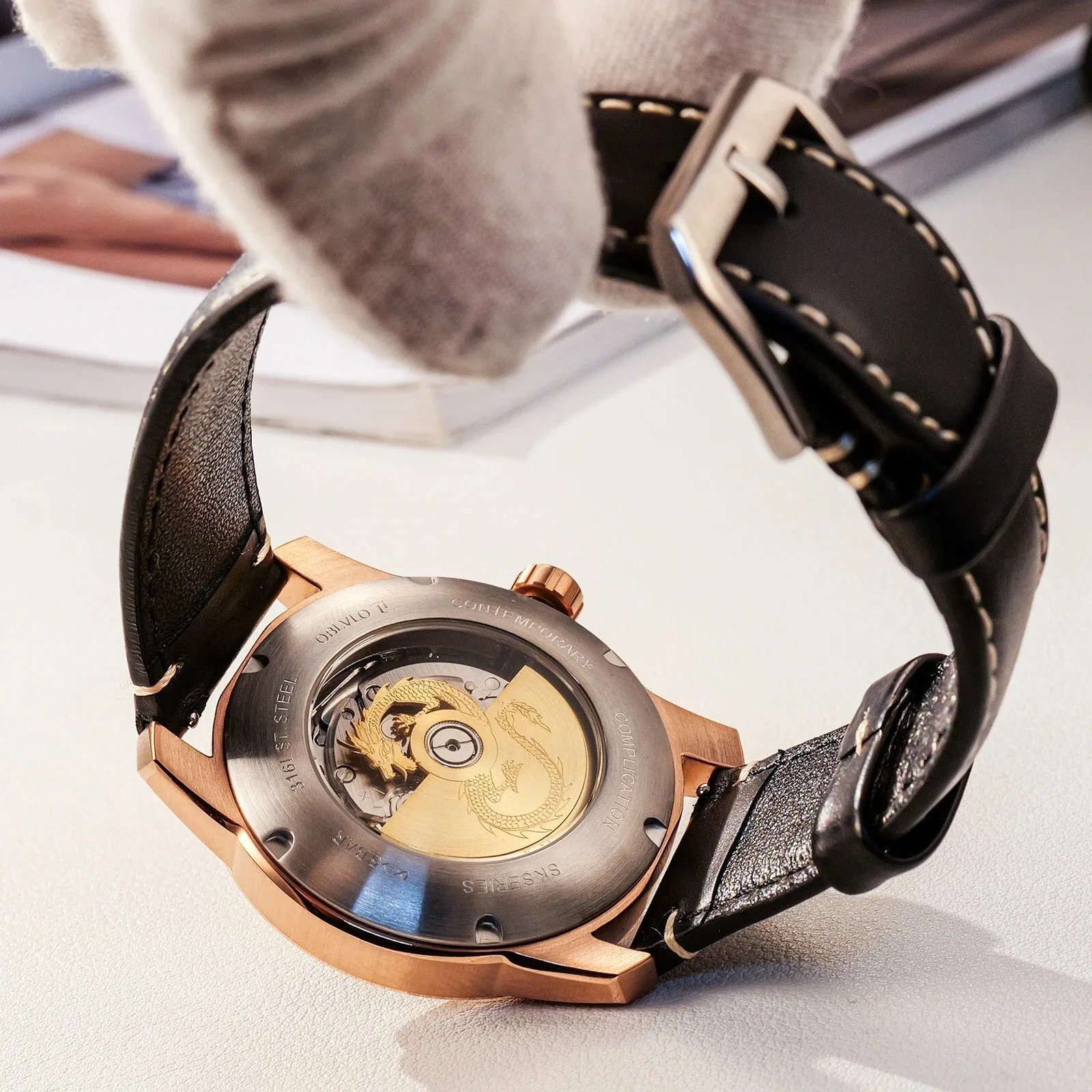 Minh Nhật Plaza xin giới thiệu mẫu đồng hồ Oblvlo Dragon Luxury Rồng tuyệt đẹp với thiết kế đỉnh cao. Biểu tượng chú rồng may mắn tài lộc kết hợp cùng bộ máy cơ chính xác cao khiến chiếc đồng hồ trở nên vô cùng hoàn hảo cả về thẩm mỹ và chất lượng.