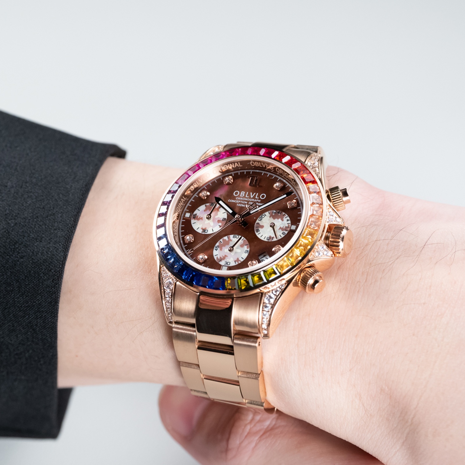 Tính năng Chronograph trên đồng hồ Oblvlo Rx-Dy cho phép người dùng đo thời gian một cách chính xác và tiện lợi. Với các nút bấm điều khiển, người dùng có thể dễ dàng bắt đầu, dừng và đặt lại thời gian đo. Tính năng này rất hữu ích trong các hoạt động thể thao, nấu ăn hoặc các công việc đòi hỏi độ chính xác cao về thời gian. Chronograph không chỉ là một tính năng hữu ích mà còn là một điểm nhấn thẩm mỹ, làm tăng thêm vẻ đẹp và sự phức tạp cho mặt số đồng hồ.