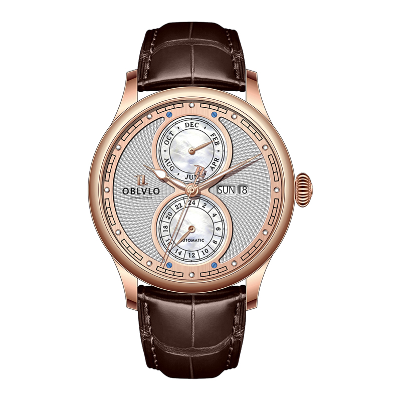 Ấn tượng đầu tiên về Oblvlo AM-PW là sự tinh tế và tỉ mỉ trong từng đường nét thiết kế. Mặt số tròn truyền thống được làm nổi bật với các chi tiết kim và vạch chỉ giờ được gia công tỉ mỉ, tạo nên một tổng thể hài hòa và dễ nhìn. Vỏ đồng hồ được làm từ thép không gỉ 316L sáng bóng, mang lại vẻ ngoài sang trọng và độ bền cao. Dây da cao cấp mềm mại ôm trọn cổ tay, tạo cảm giác thoải mái khi đeo trong thời gian dài. Sự kết hợp giữa các yếu tố cổ điển và hiện đại tạo nên một phong cách độc đáo, phù hợp với nhiều đối tượng người dùng.