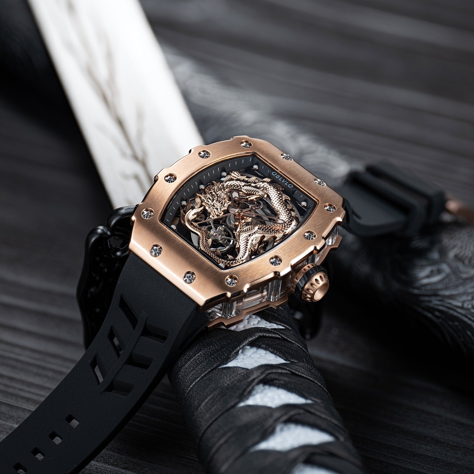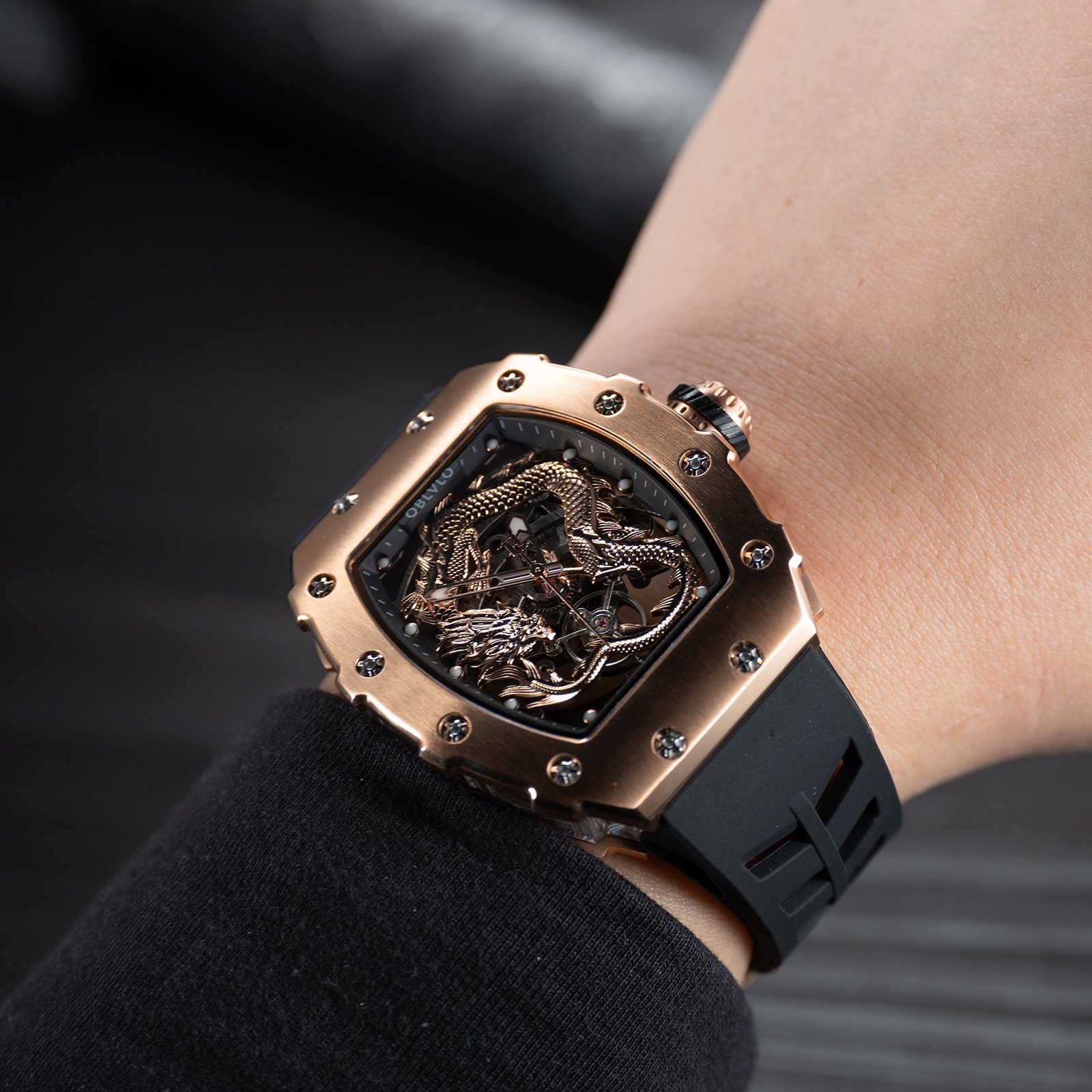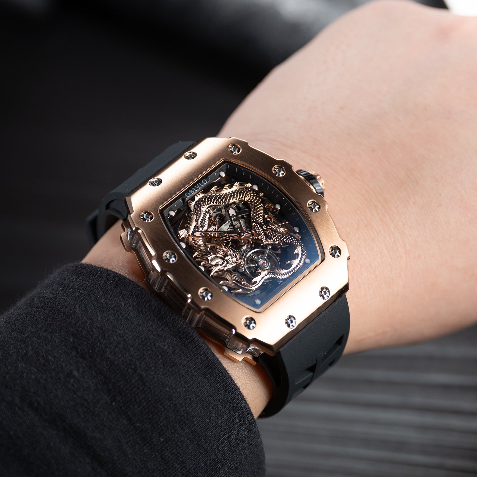 Rồng, trong văn hóa phương Đông, luôn là biểu tượng của sức mạnh, quyền lực và may mắn. Trên ĐỒNG HỒ NAM OBLVLO DRAGON VÀNG, hình ảnh của con rồng được minh họa với đường nét uyển chuyển, mang lại một cảm giác vô cùng mạnh mẽ và linh thiêng.