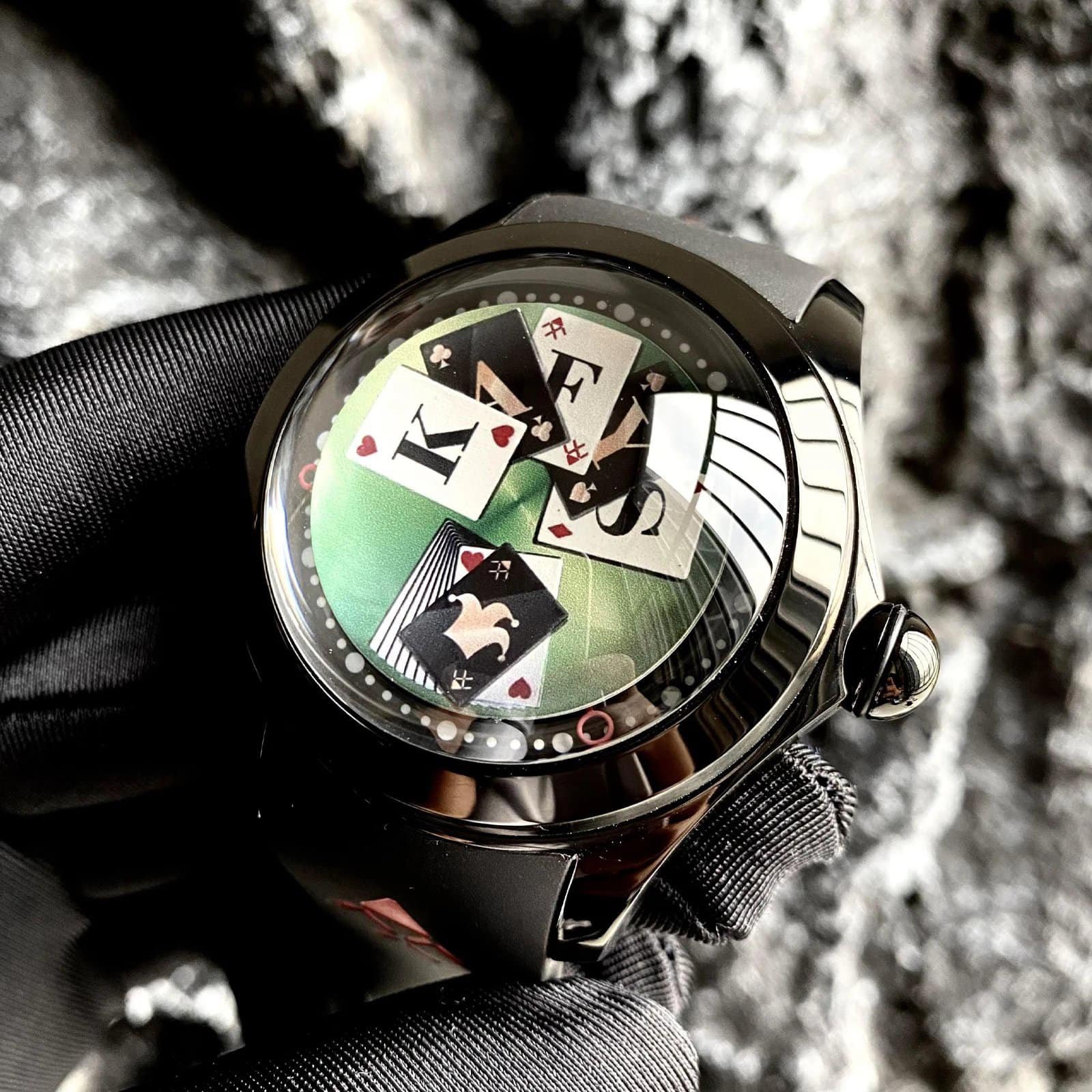 Sự sắp xếp thông minh và tỉ mỉ của các lá bài không chỉ tạo nên một vẻ đẹp độc đáo mà còn thể hiện sự sáng tạo và tinh thần nghệ sĩ của người thiết kế. Đồng hồ không chỉ là một phụ kiện thời trang mà còn là một tác phẩm nghệ thuật, thể hiện sự tinh tế và đẳng cấp của chủ nhân.