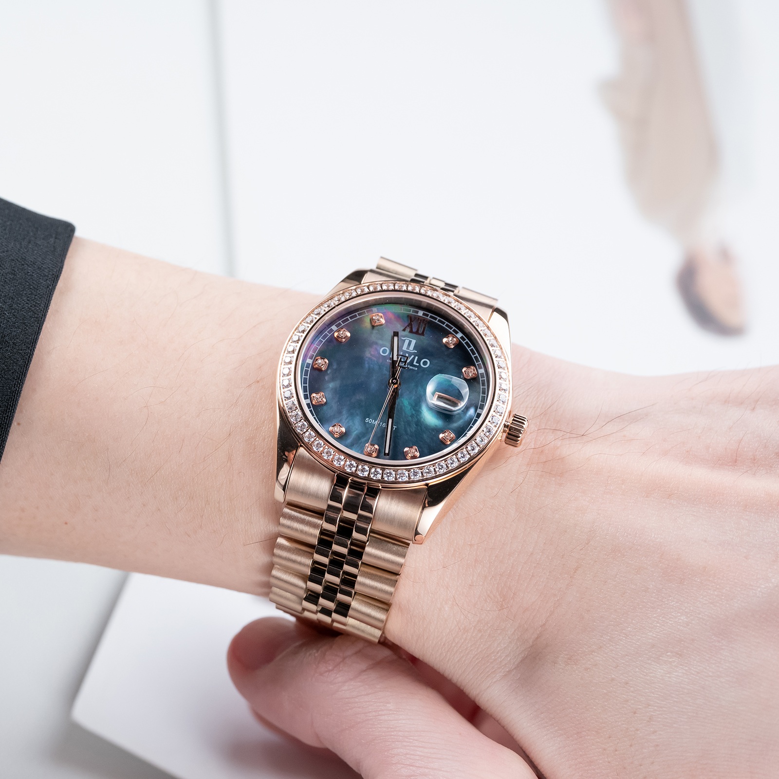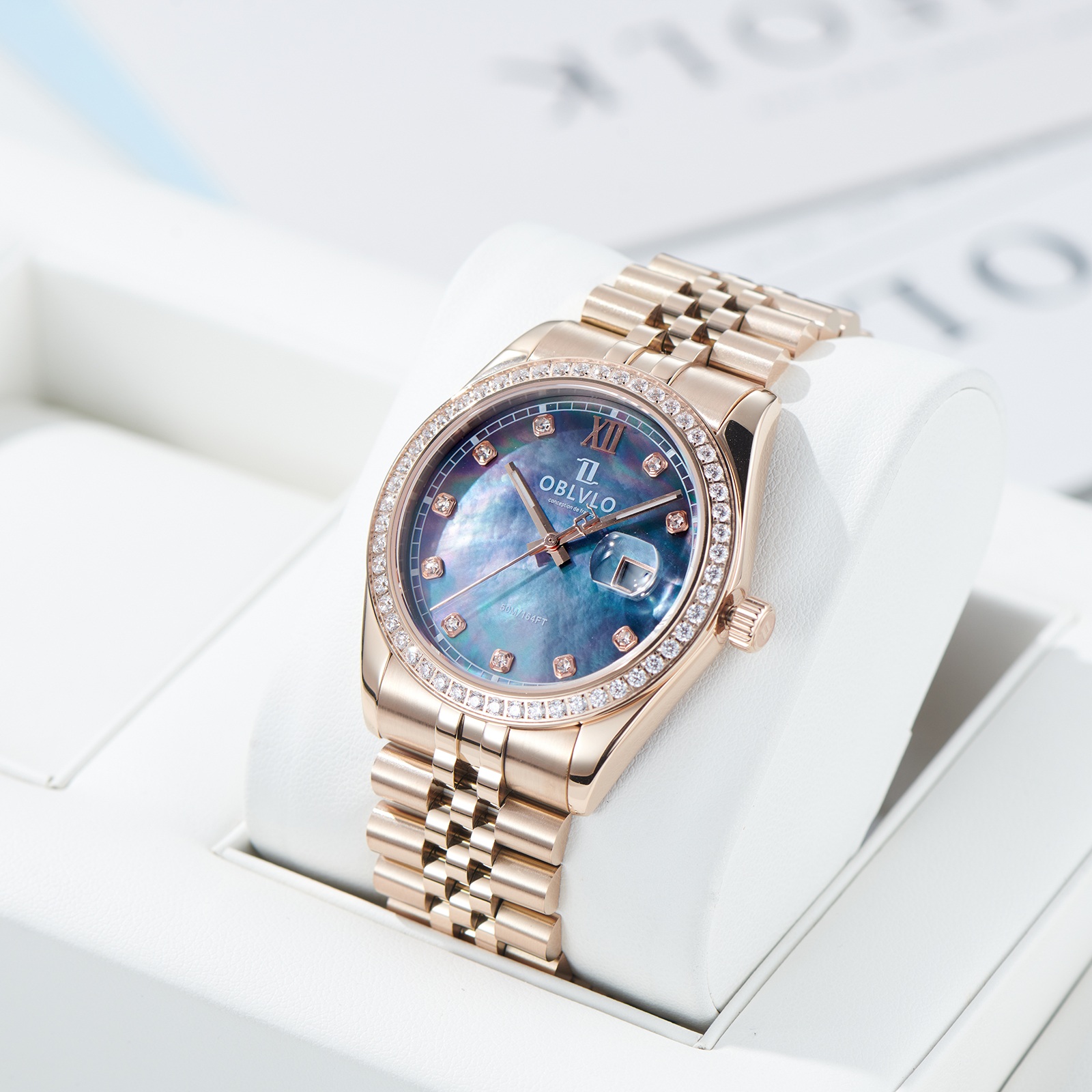 Đồng hồ Oblvlo RX-PE-D-PBPS Swiss Quartz khảm trai là một tuyệt tác nghệ thuật, kết hợp giữa sự tinh tế của thiết kế Thụy Sỹ và vẻ đẹp quyến rũ của khảm trai. Chiếc đồng hồ này không chỉ là một công cụ đo thời gian, mà còn là một phụ kiện thời trang đẳng cấp, thể hiện phong cách và cá tính của người đeo.