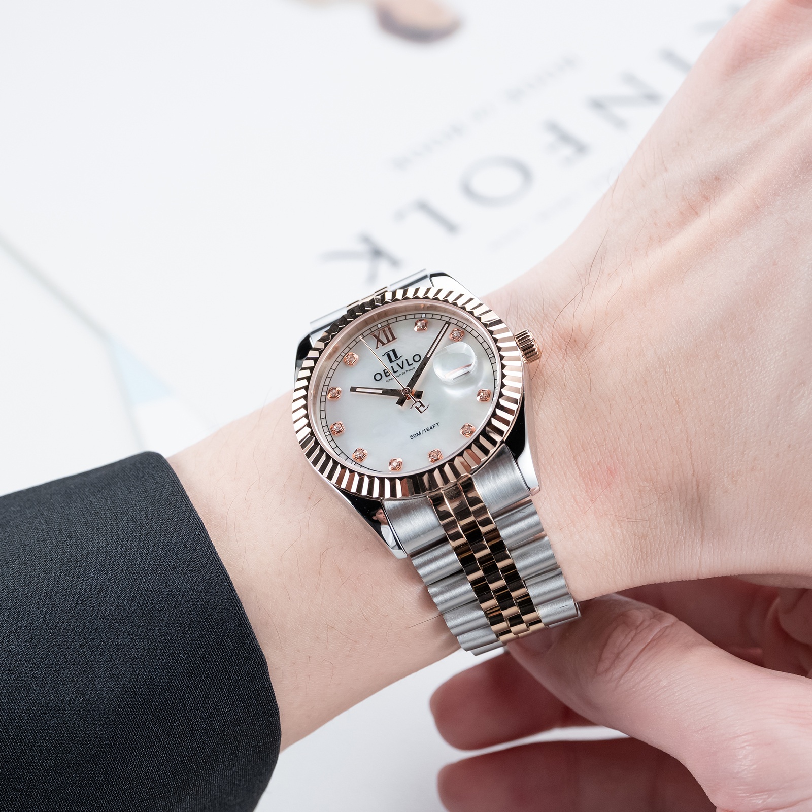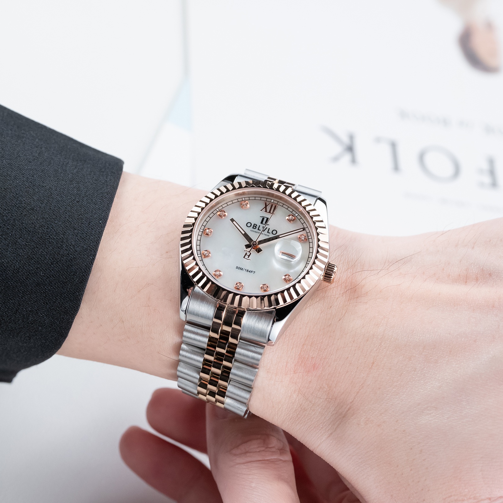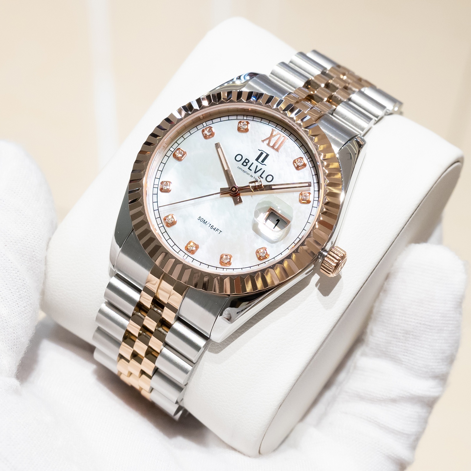 Mặt số khảm trai của đồng hồ Oblvlo RX-PE-TWPS là điểm nhấn đặc biệt, tạo nên vẻ đẹp quyến rũ và sang trọng. Sự kết hợp giữa màu trắng ngọc trai và viền vàng tinh tế mang đến một diện mạo độc đáo và thu hút mọi ánh nhìn. Lớp khảm trai tự nhiên trên mặt số tạo ra hiệu ứng ánh sáng lấp lánh, làm cho chiếc đồng hồ trở nên sống động và cuốn hút hơn bao giờ hết. Mỗi chiếc đồng hồ có một mặt số khảm trai độc nhất vô nhị, không chiếc nào giống chiếc nào. Điều này làm tăng thêm giá trị và tính cá nhân hóa cho sản phẩm, khiến nó trở thành một món đồ độc đáo và đáng tự hào của người sở hữu. Sự tỉ mỉ và công phu trong quá trình chế tác mặt số khảm trai thể hiện sự chăm chút và tâm huyết của nhà sản xuất, khẳng định chất lượng và đẳng cấp của thương hiệu Oblvlo.