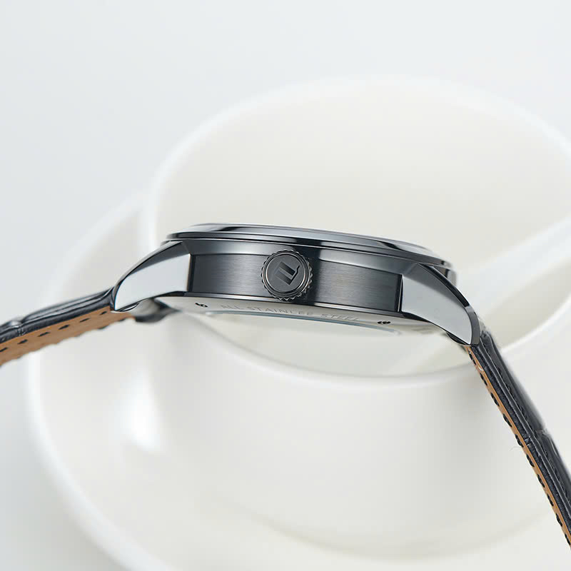 Vỏ đồng hồ được chế tác từ chất liệu thép không gỉ cao cấp, kết hợp cùng dây đeo da mềm mại, mang lại cảm giác thoải mái khi đeo. Mặt kính sapphire chống trầy xước giúp bảo vệ tối ưu, đảm bảo đồng hồ luôn giữ được vẻ ngoài sáng bóng và bền bỉ.
