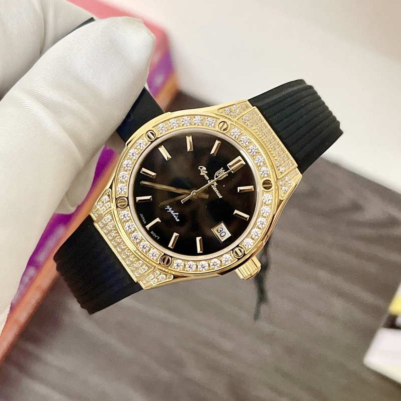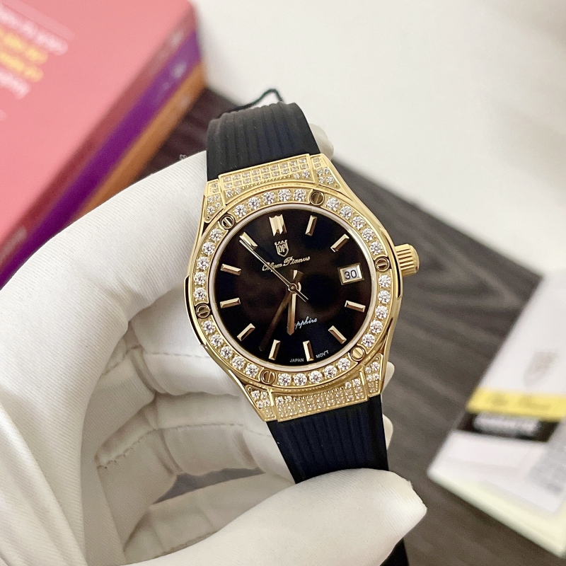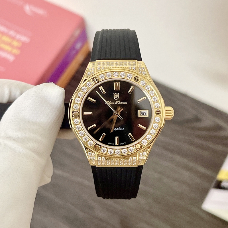 Phiên bản Hublot giá rẻ vừa xuất hiện lần đầu tại Việt Nam! Size 34mm dễ lên tay.Viền đá siêu sáng, mặt số cùng tone dây cực đẹp.Dây silicone siêu bềnKhoá bướm tiện dụng .Máy quartz Nhật Bản, kính sapphire chống xước