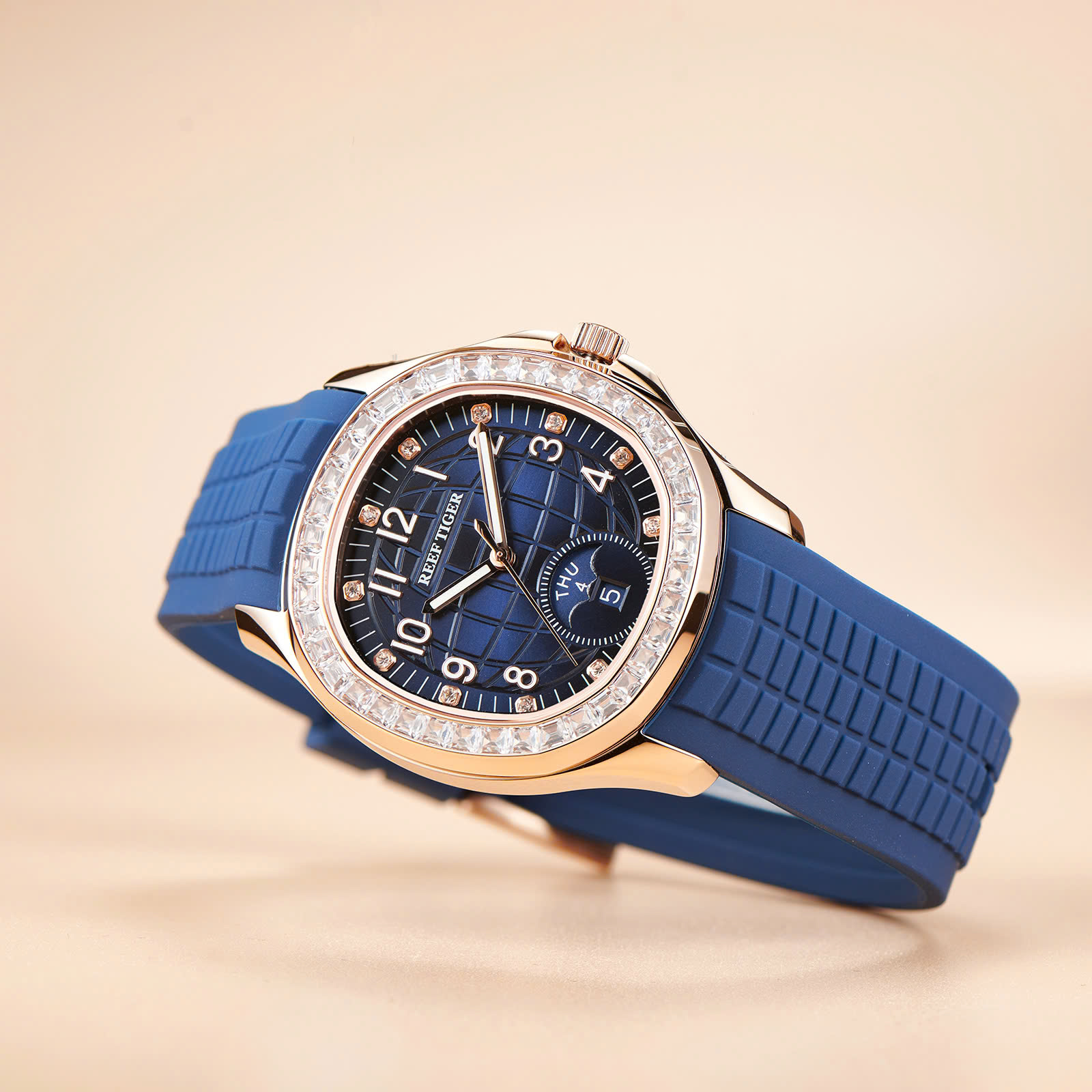 Đồng hồ nam **Reef Tiger RGA1805-PLLRD** là sự kết hợp hoàn mỹ giữa phong cách sang trọng và đẳng cấp, nổi bật với mặt xanh dương cuốn hút cùng viền đá quý tinh xảo đính quanh, tạo nên sự lộng lẫy đầy thu hút. Vỏ thép không gỉ cao cấp mang lại vẻ ngoài quý phái, kết hợp với dây đeo silicone mềm mại, không chỉ đảm bảo sự thoải mái khi đeo mà còn tôn lên phong cách lịch lãm. Mặt kính sapphire chống trầy xước bảo vệ đồng hồ trước các tác động bên ngoài, giúp sản phẩm luôn giữ được vẻ sáng bóng và hoàn hảo. Với bộ máy automatic chính xác, Reef Tiger RGA1805-PLLRD không chỉ là phụ kiện thời trang cao cấp mà còn là biểu tượng của sự ổn định và tin cậy. Đây là lựa chọn lý tưởng cho những quý ông muốn khẳng định phong cách mạnh mẽ, sang trọng và đẳng cấp của mình.