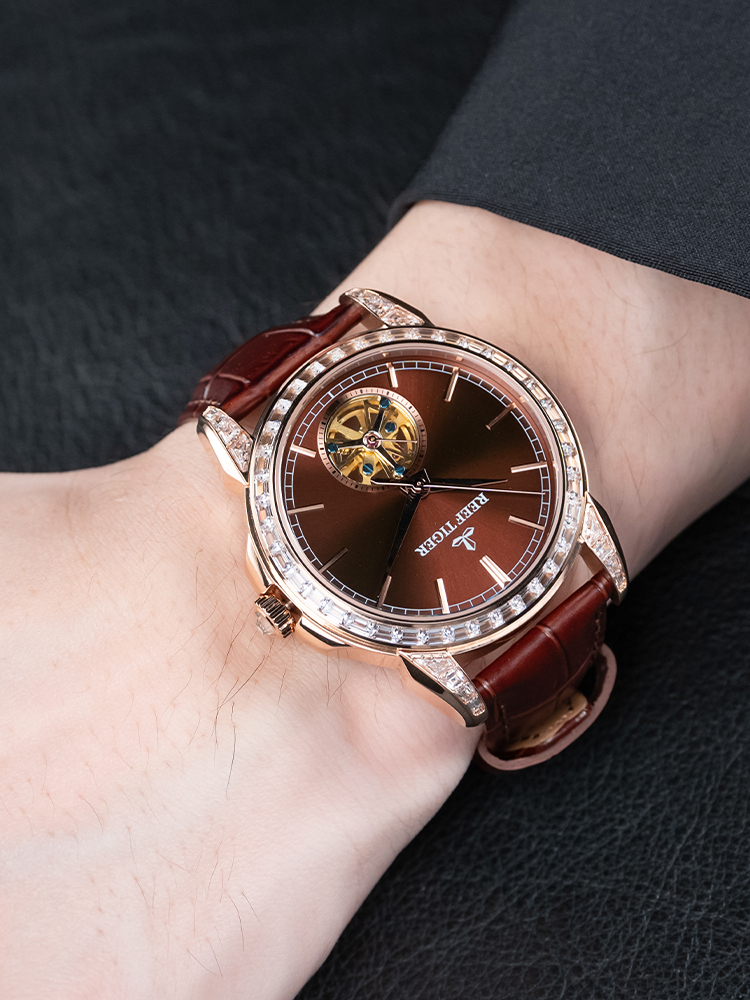 Đồng Hồ Nam Reef Tiger RGA1904 Đính Đá Cao Cấp là sự lựa chọn hoàn hảo cho những quý ông yêu thích sự sang trọng, lịch lãm và đẳng cấp. Với thiết kế tinh xảo, chất liệu cao cấp và bộ máy automatic mạnh mẽ, chiếc đồng hồ này không chỉ là một công cụ đo thời gian, mà còn là một phụ kiện thời trang thể hiện phong cách và cá tính của người đeo. Hãy sở hữu ngay một chiếc Reef Tiger RGA1904 để trải nghiệm sự khác biệt và đẳng cấp mà nó mang lại.