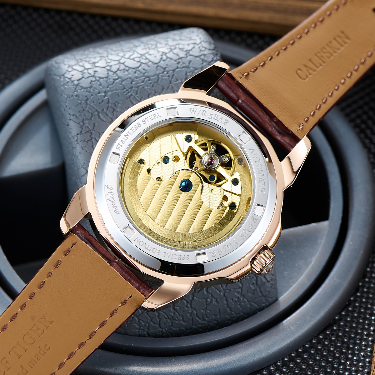 Trái tim của chiếc đồng hồ Reef Tiger RGA1904 là bộ máy automatic (cơ tự động) mạnh mẽ và chính xác. Bộ máy này hoạt động dựa trên nguyên lý tự động lên dây cót khi người dùng đeo đồng hồ và vận động. Điều này giúp đồng hồ luôn hoạt động ổn định mà không cần phải lên dây cót bằng tay thường xuyên. Bộ máy automatic của Reef Tiger RGA1904 được sản xuất và lắp ráp tỉ mỉ, đảm bảo độ chính xác cao và tuổi thọ lâu dài. Người dùng có thể yên tâm về khả năng đo thời gian chính xác của chiếc đồng hồ này trong suốt quá trình sử dụng.