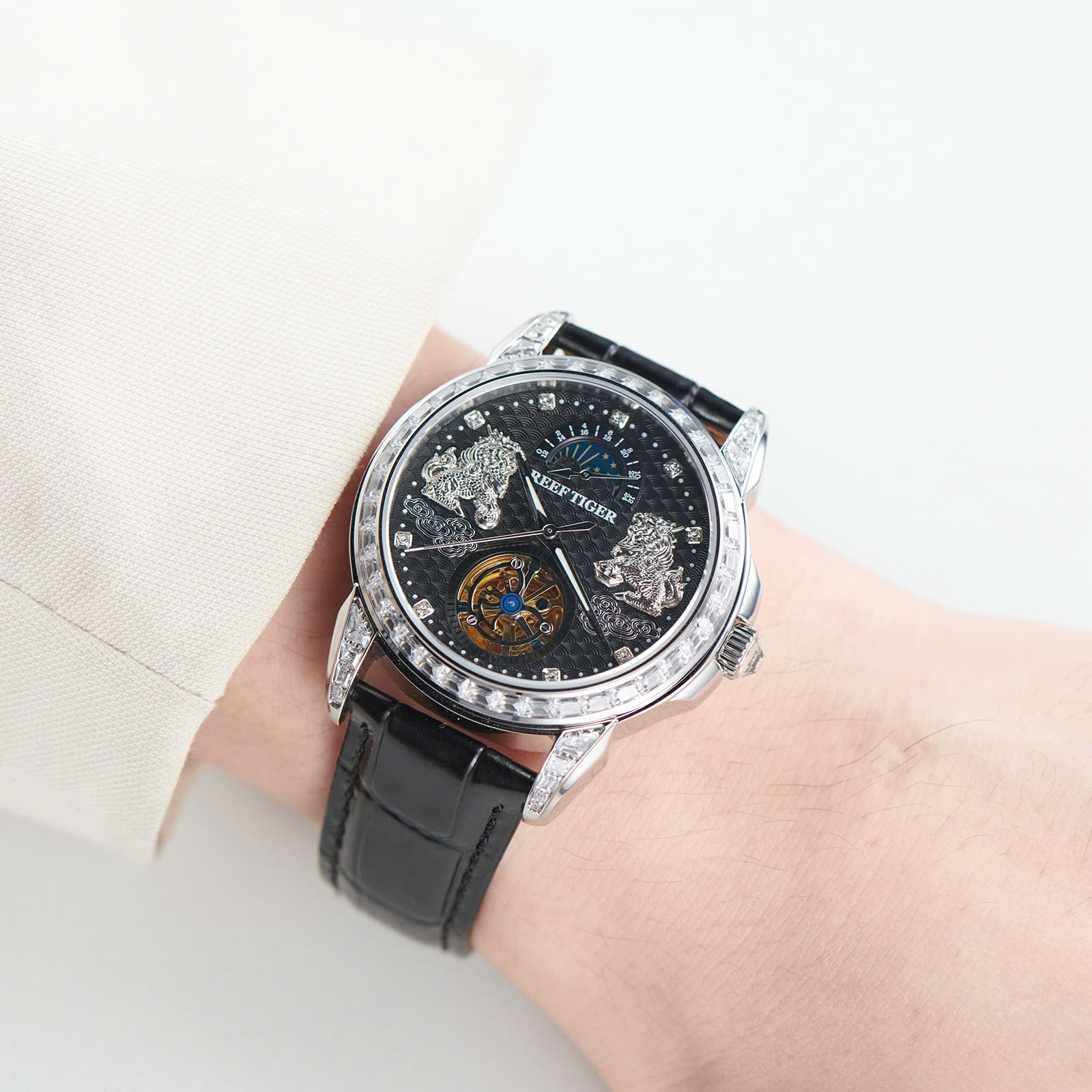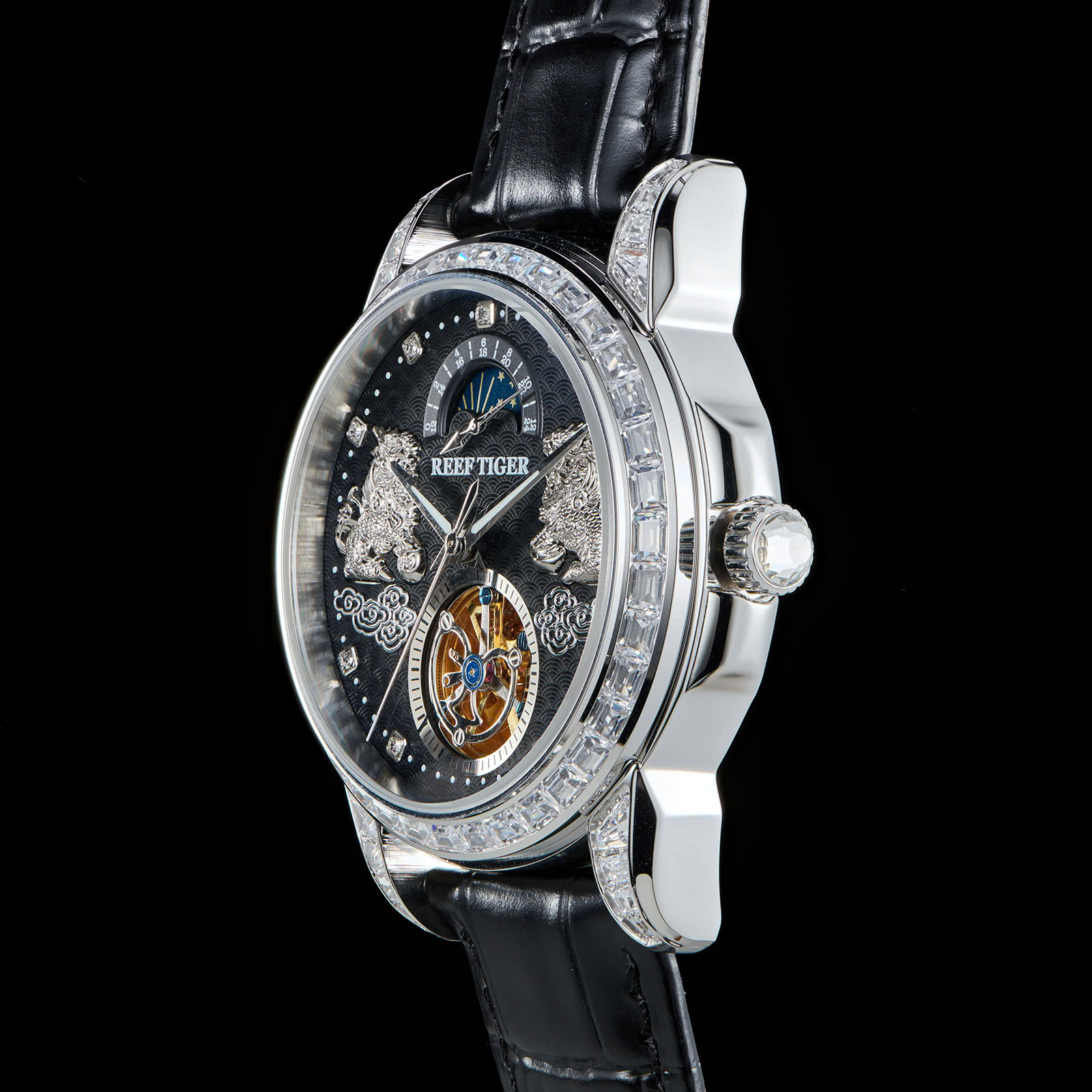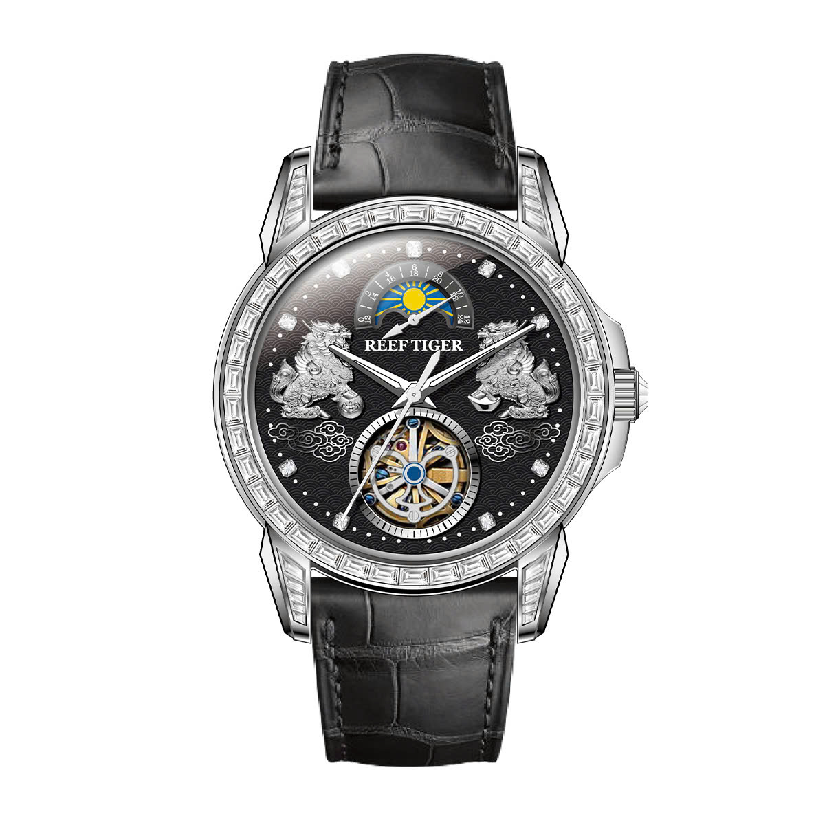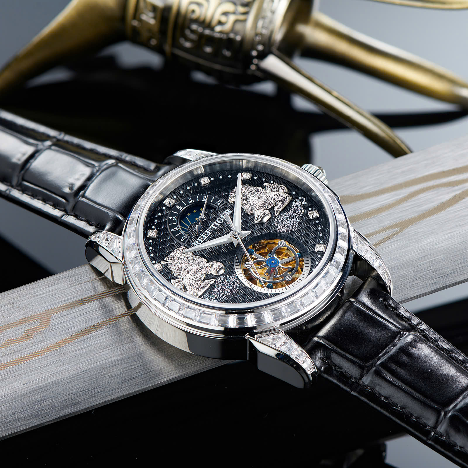 ĐỒNG HỒ NAM REEF TIGER RGA1935-YBBD là sự kết hợp hoàn hảo giữa phong cách sang trọng và đẳng cấp, dành cho những quý ông yêu thích sự tinh tế và quyền lực. Với thiết kế mặt đồng hồ độc đáo, nổi bật là hình ảnh hai con tỳ hưu mạnh mẽ, biểu tượng cho sự may mắn, thịnh vượng và tài lộc. Tỳ hưu không chỉ mang ý nghĩa phong thủy, mà còn tạo điểm nhấn nghệ thuật cho chiếc đồng hồ, làm tăng thêm vẻ uy quyền và khác biệt cho người đeo.