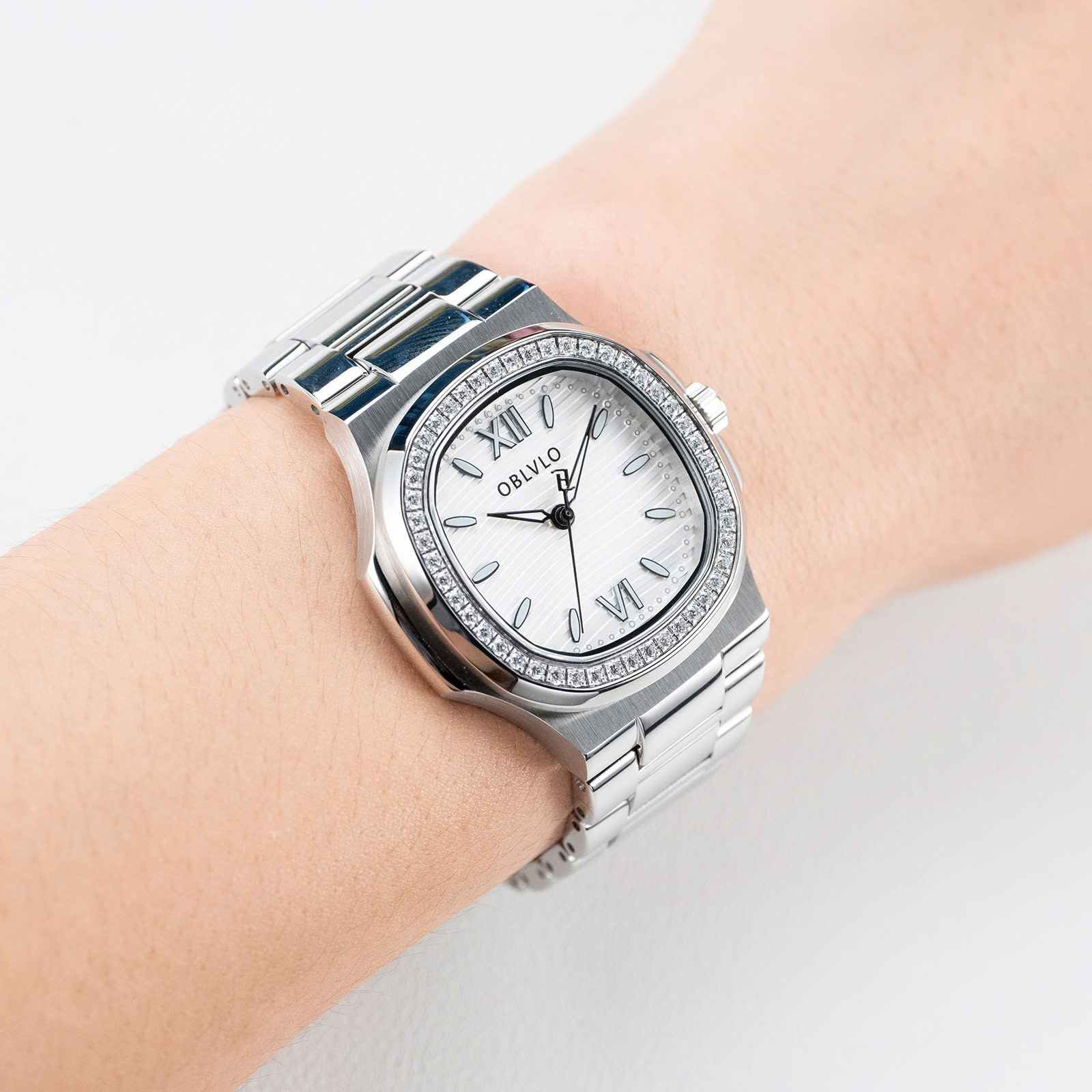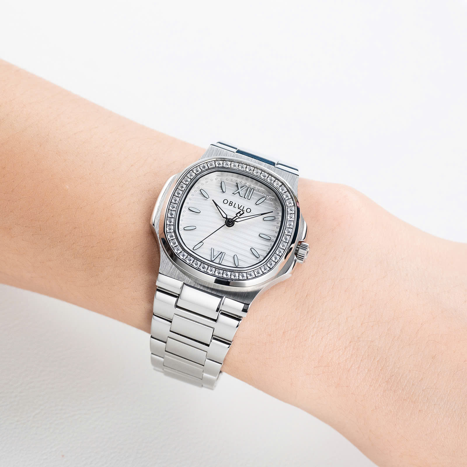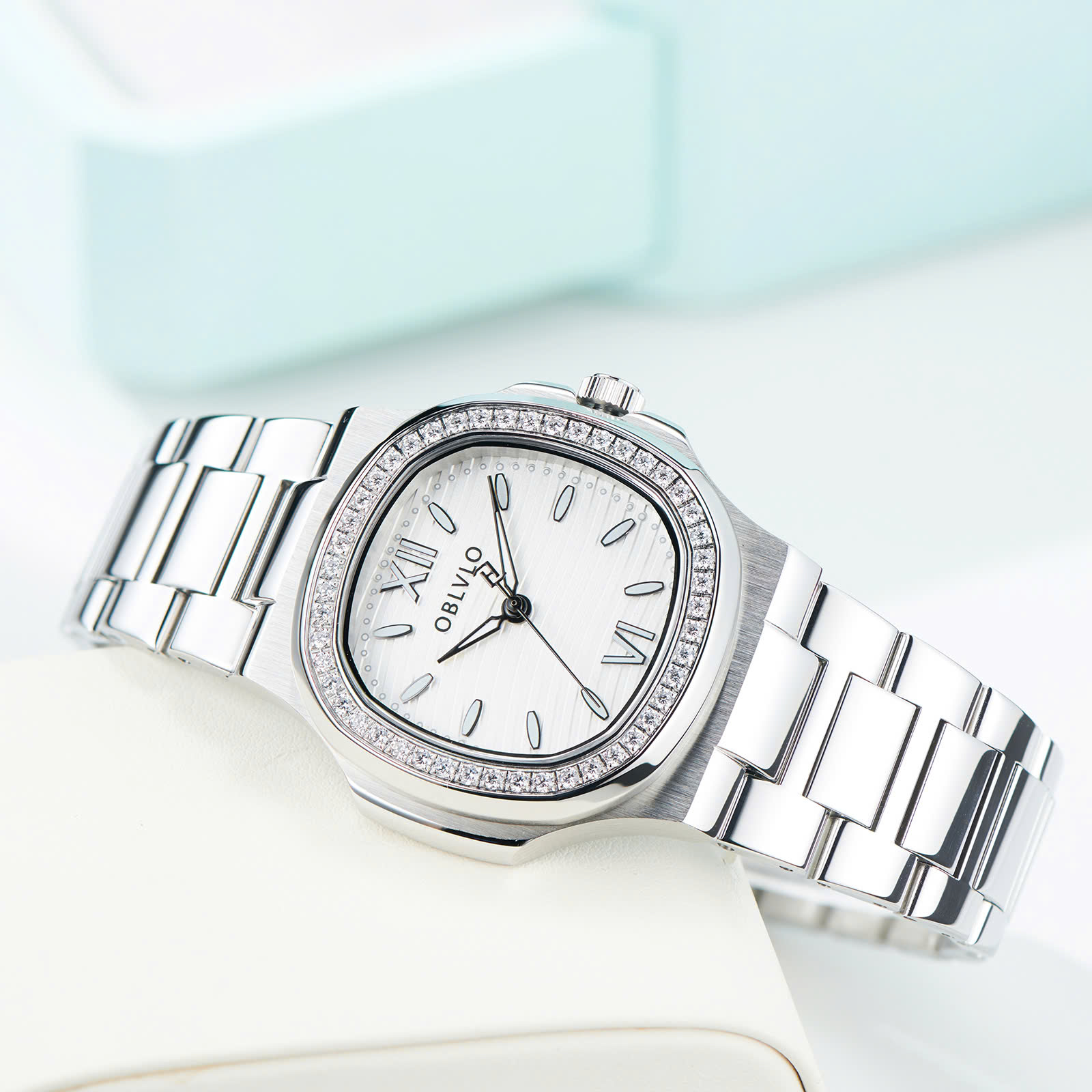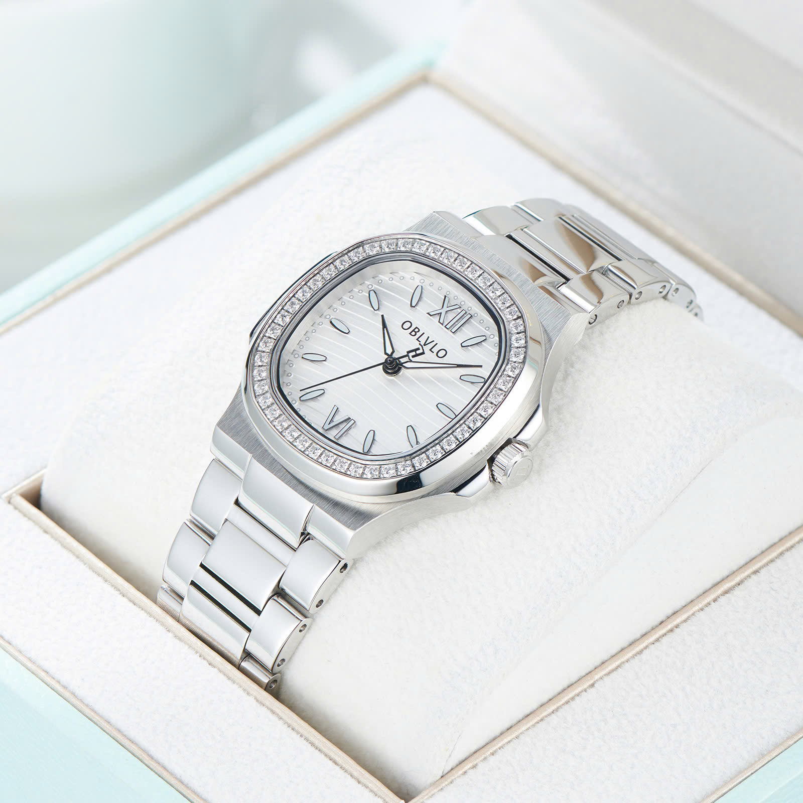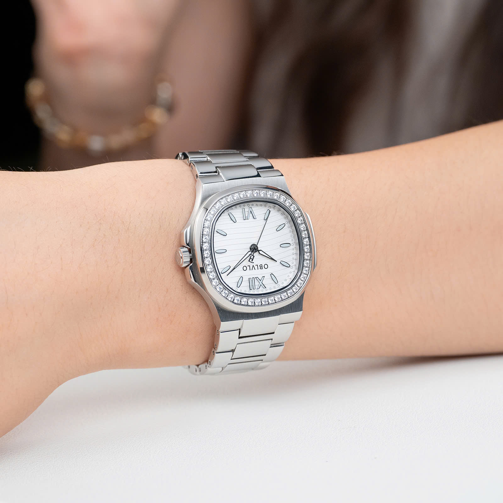 Đồng hồ nữ Oblvlo FW-S-YWY mang đến một vẻ đẹp thanh lịch và sang trọng trong tông màu bạc sáng bóng. Thiết kế tinh tế của chiếc đồng hồ này không chỉ làm nổi bật phong cách của người phụ nữ hiện đại mà còn phản ánh sự tinh xảo trong từng chi tiết.