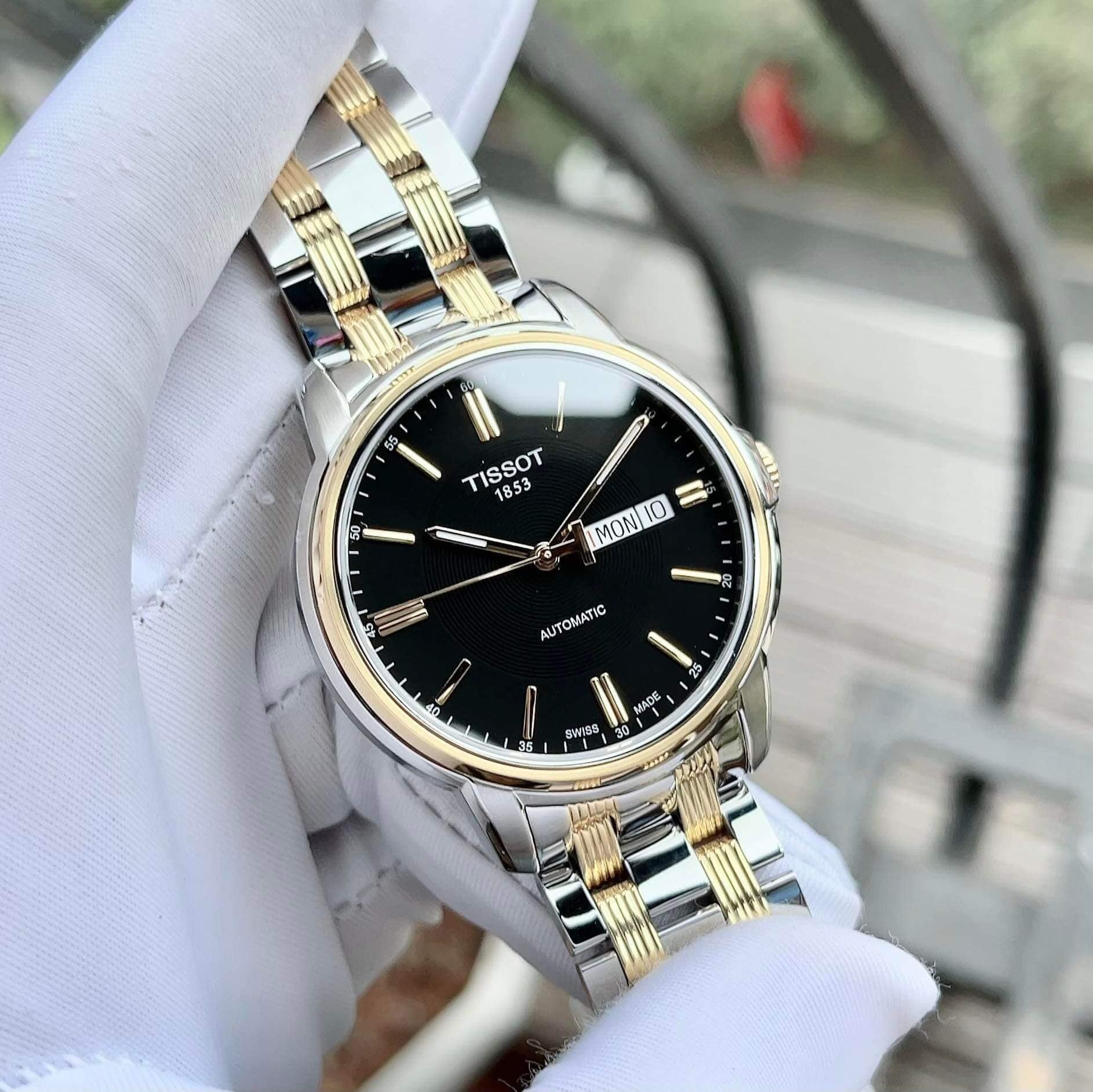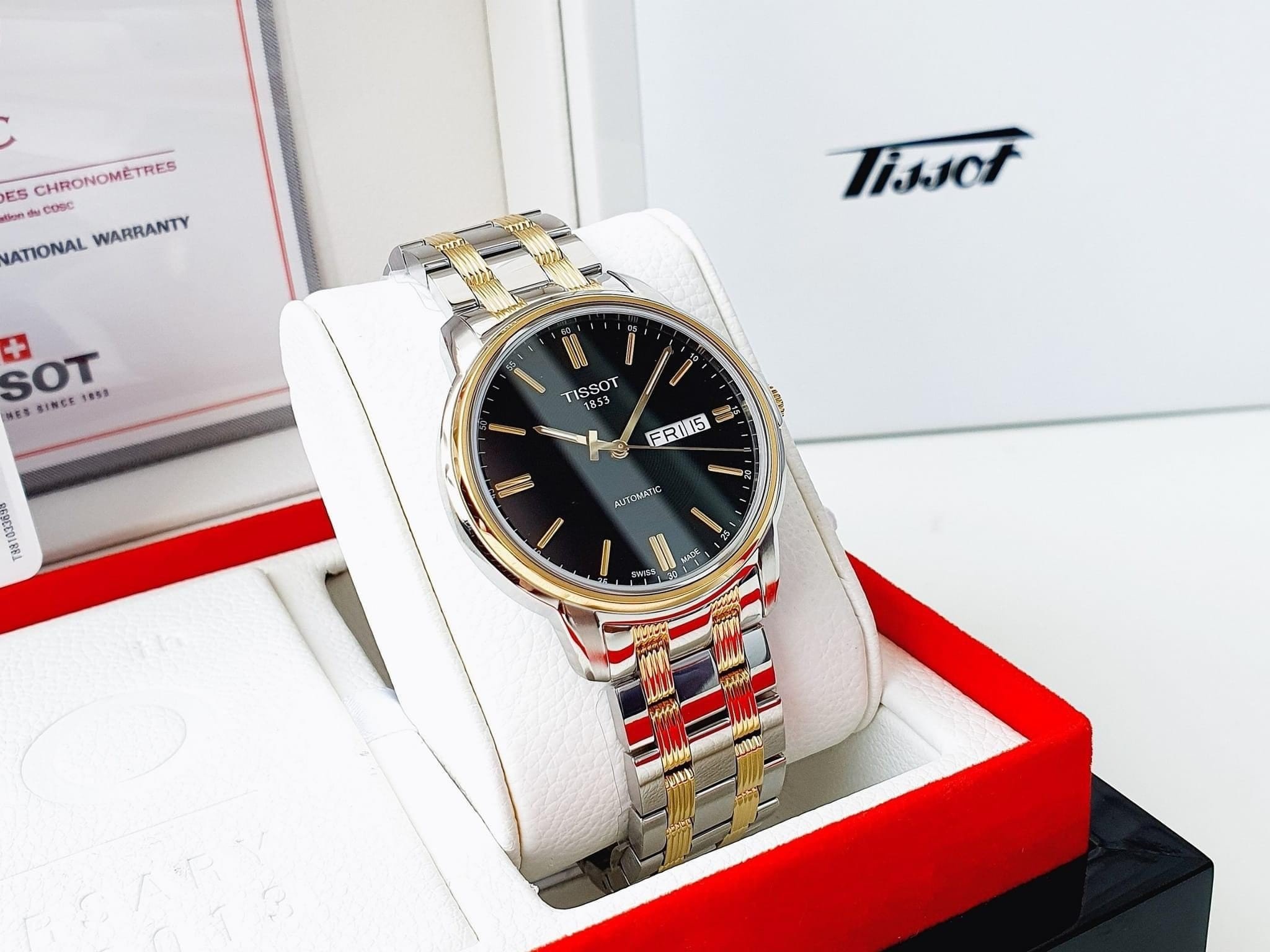 Một mẫu đồng hồ Tissot truyền thống với thiết kế 3 kim, lịch ngày, lịch thứ, bộ kim cọc đơn giản nhưng vô cùng trang nhã và tinh tế.