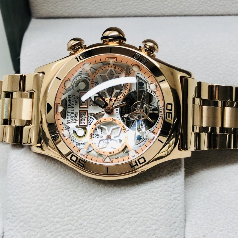 Reef Tiger là một thương hiệu đồng hồ có nguồn gốc xuất xứ đến từ nước Đức, một đất nước không chỉ nổi tiếng với thương hiệu xe hơi mà còn nơi ra đời của những hãng đồng hồ danh tiếng. Vào những năm 1898 đồng hồ chỉ được sử dụng bởi giới quý tộc, chính vì vậy nghệ nhân Stephane Reef mong muốn không chỉ giới quý tộc mà toàn bộ người dân trung lưu, bình dân đều có thể tiếp cận với sản phẩm đồng hồ và do đó ông sáng lập ra thương hiệu Reef Tiger – cái tên được ghép Stephane Reef và người bạn quý tộc của ông là Leandro Tiger.